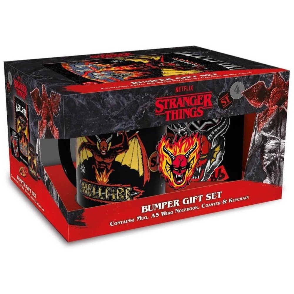 V krásné dárkové sadě pro milovníky kultovního seriálu Stranger Things najdeš hrnek, podtácek, linkovaný zápisník formátu A5 a klíčenku - to vše s motivem Hellfire Clubu. Perfektní dárek, který udělá radost každému fanouškovi legendární série, ať už je členem klubu nebo se do něj teprve chystá vstoupit! Hrnek je vhodný do mikrovlnky a myčky nádobí.