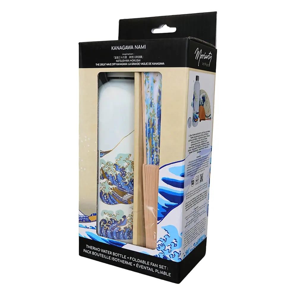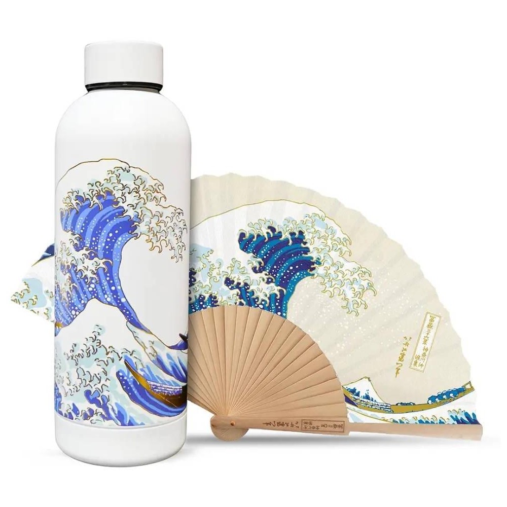 Hledáš perfektní dárek, který zaujme a potěší? Tato exkluzivní sada inspirovaná ikonickou Velkou vlnou u Kanagawa od Katsushika Hokusai je ideální volbou! Spojuje krásu a praktičnost – 500 ml izolovaná láhev z nerezové oceli udrží nápoje horké nebo studené po celé hodiny a lehký skládací vějíř z přírodního bambusu přinese osvěžení kdykoli. Elegantní design obou doplňků se perfektně doplňuje a celé balení v dárkové krabičce z něj činí luxusní a originální dárek pro každého, kdo ocení japonské umění! Láhev není vhodná do mikrovlnky ani do myčky nádobí.