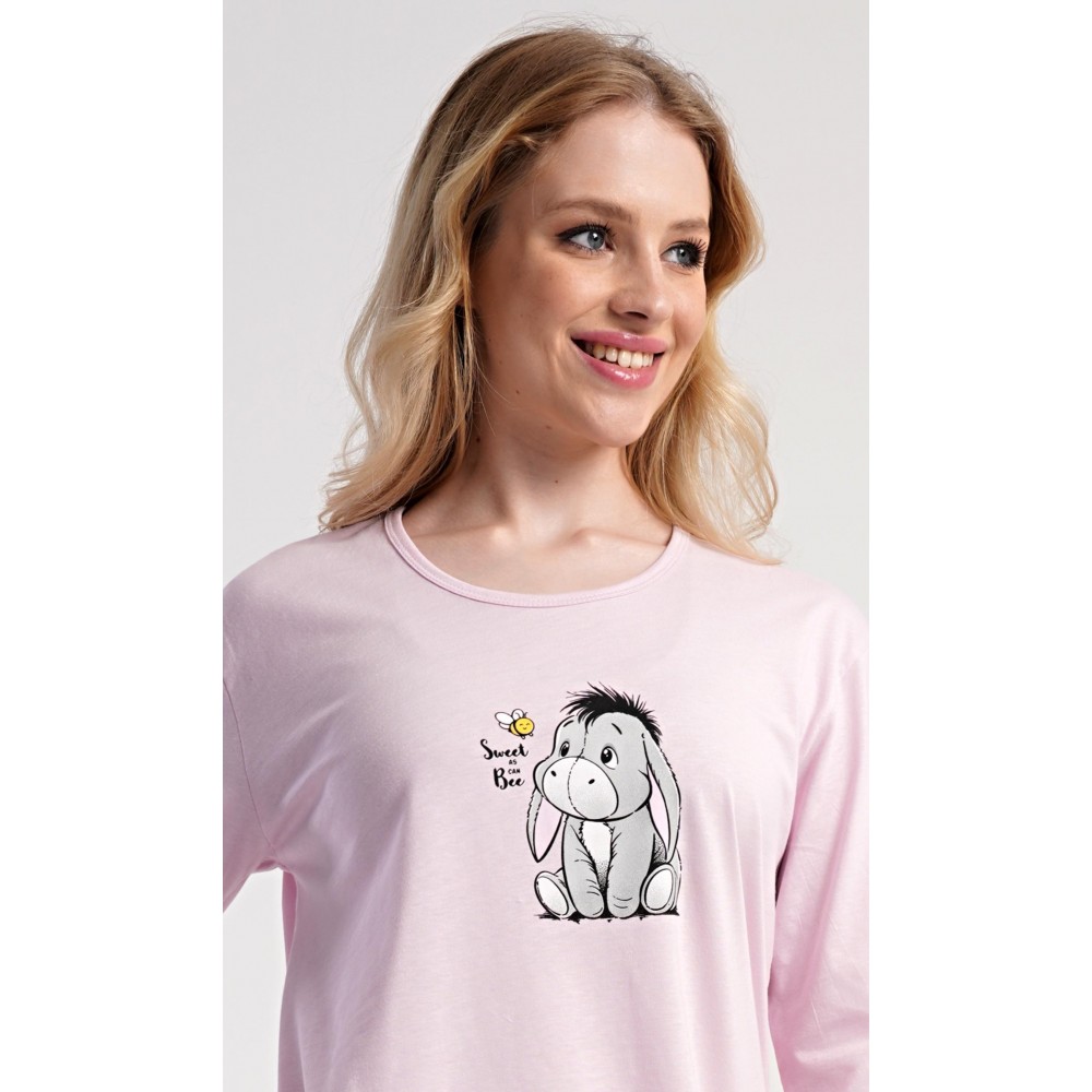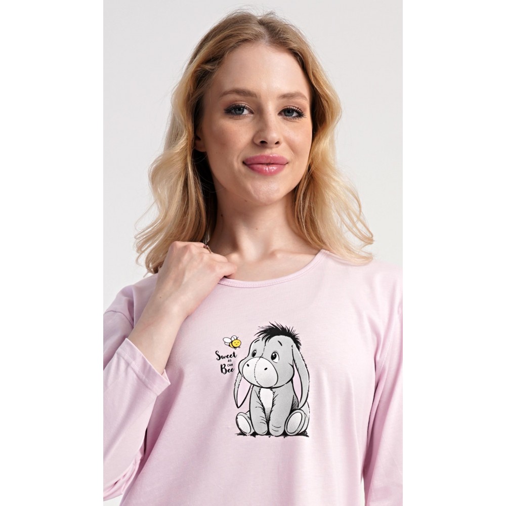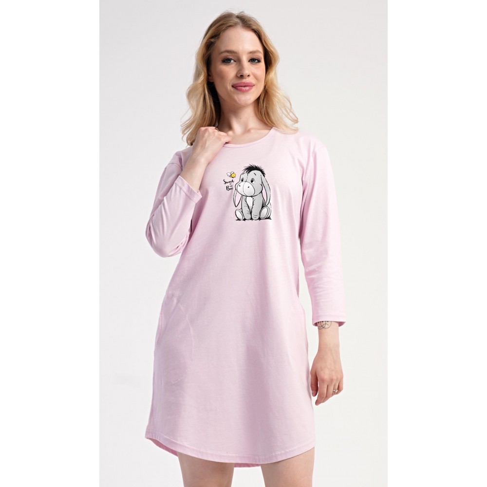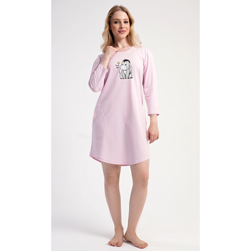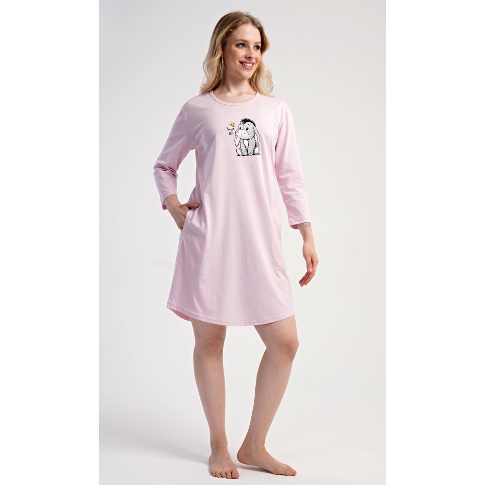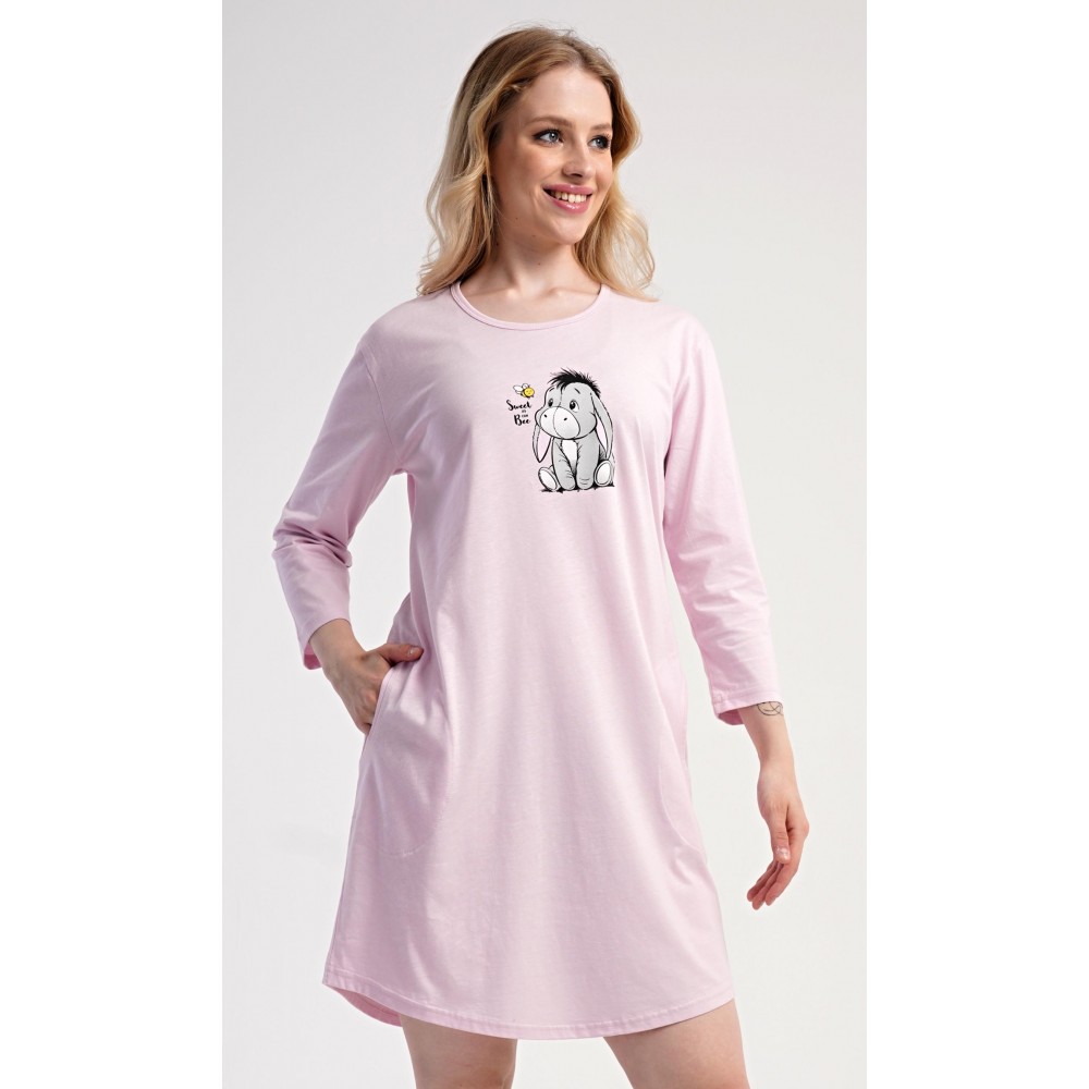 Dámské bavlněné domácí šaty s tříčtvrtečním rukávem Oslík. Domácí bavlněné šaty s kulatým výstřihem mají praktické kapsy a zdobí je na hrudi obrázek oslíka. Použitý bavlněný materiál je příjemný a poddajný na dotek.