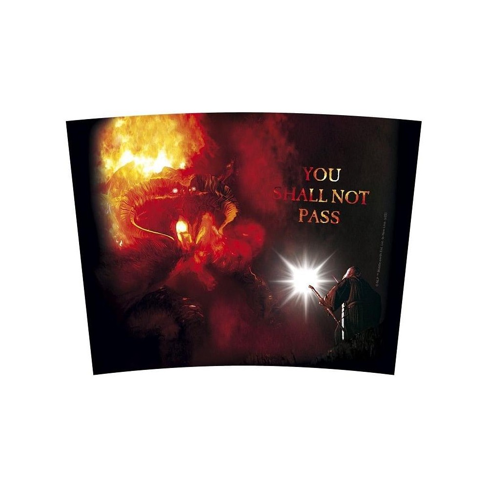 Zažeň žízeň spolu s cestovním hrnkem se slavnou scénou z Pána prstenů, kdy čaroděj Gandalf čelí strašlivému Balrogovi z hlubin trpasličí Morie. Ať už míříš kamkoliv na zemském povrchu i pod ním, hrnek z izolačního plastu uchová teplo tvého nápoje! Na hrnku najdeš taktéž Gandalfův výrok: You shall not pass! - Neprojdeš dál! Hrnek není vhodný do myčky ani mikrovlnné trouby.