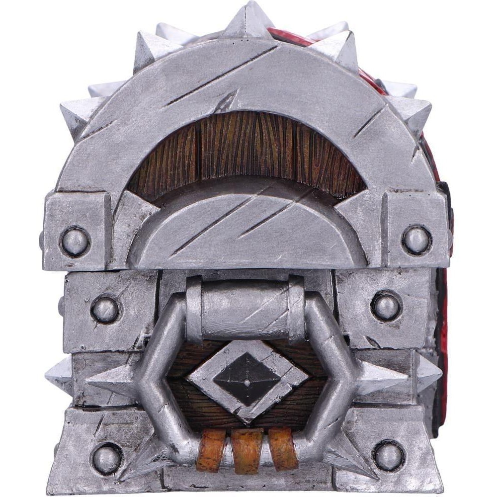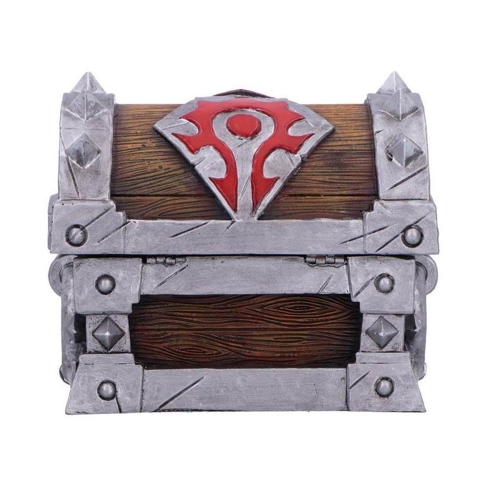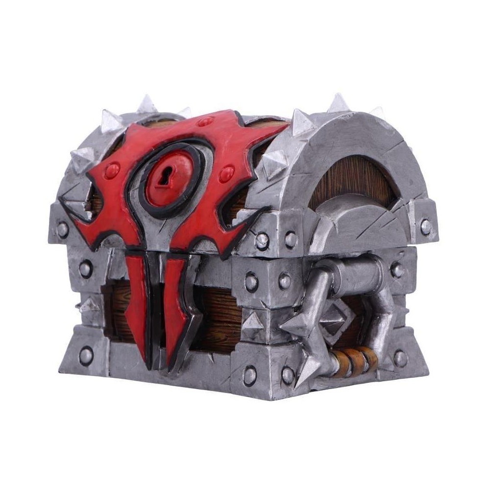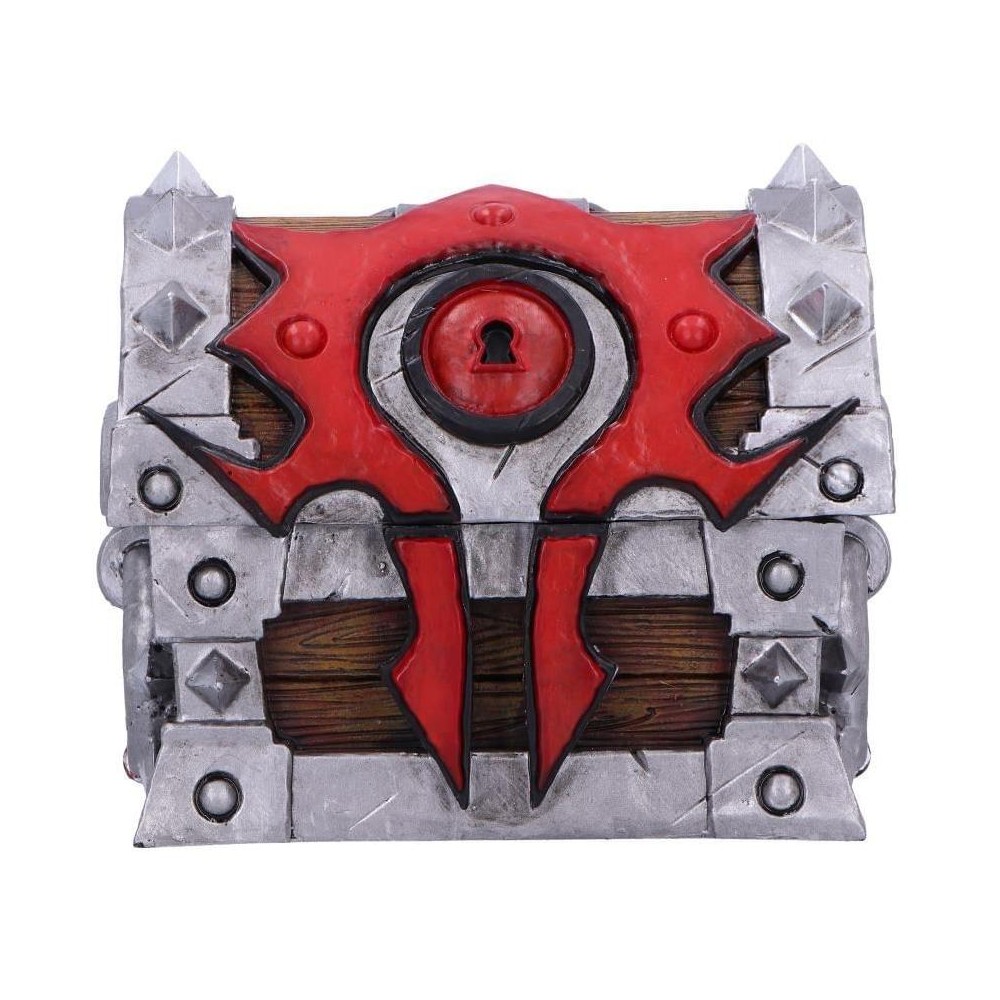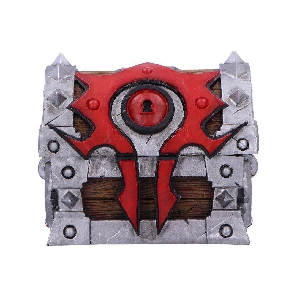 Truhlička se symbolem Hordy z úchvatného světa World of Warcraft se hodí na tvé poklady Azerothu, cennosti nebo i kostky, žetony a další herní drobnosti. Skvělý doplněk hráčské domácnosti i rekvizita pro hernu. Truhlička ve stříbrné a rudé barvě je vyrobena z odolného resinu a zdobí ji celá řada jedinečných detailů - nechybí imitace klíčového otvoru.