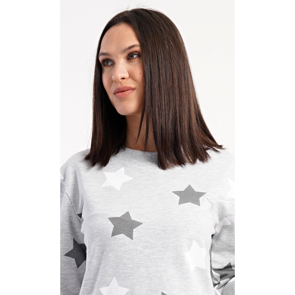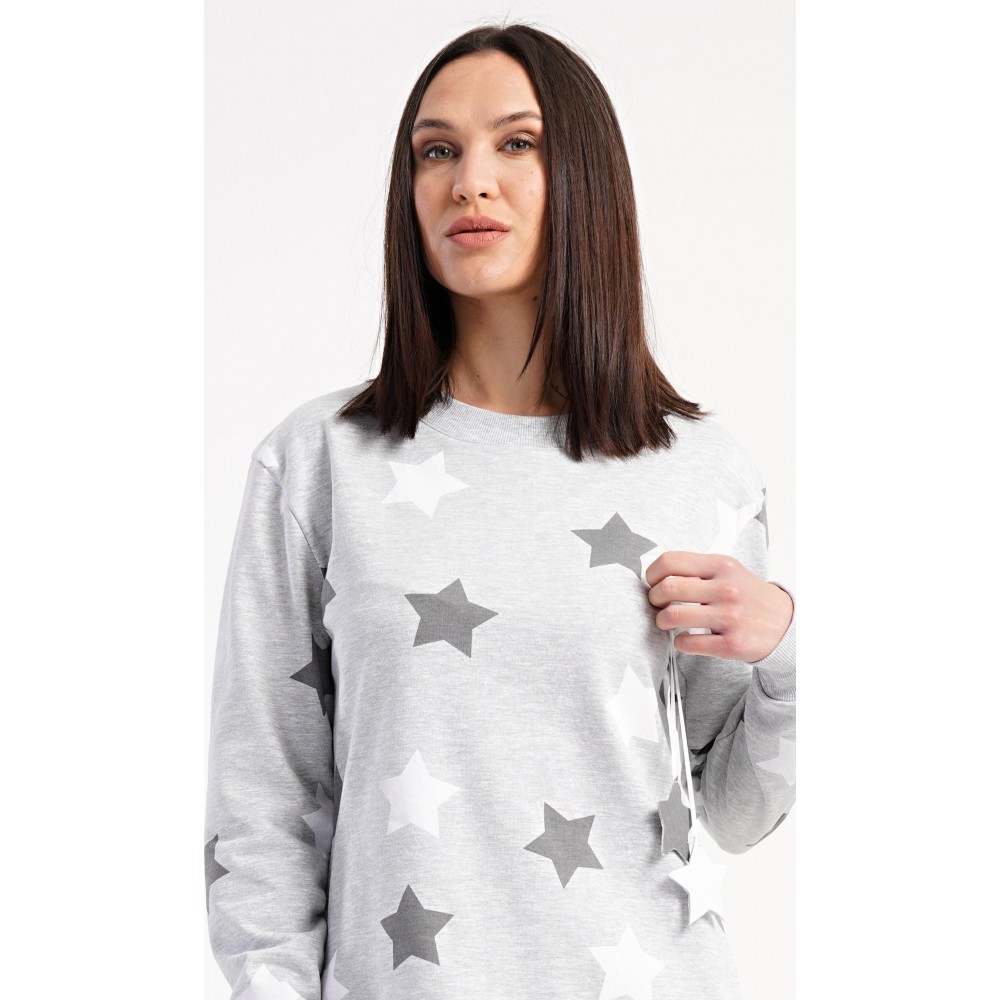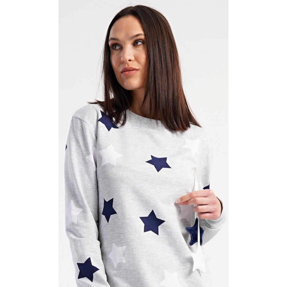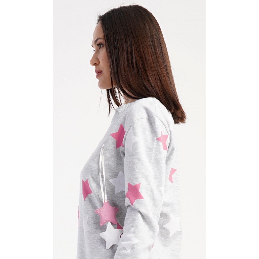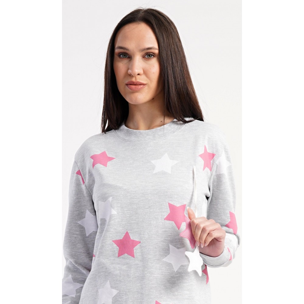 Dámské domácí šaty s dlouhým rukávem Hvězdy. Pohodlné domácí šaty s dlouhým rukávem a kulatým výstřihem zdobí potisk hvězd. Použitý oteplený materiál s obsahem bavlny 70% je příjemný a poddajný na dotek.