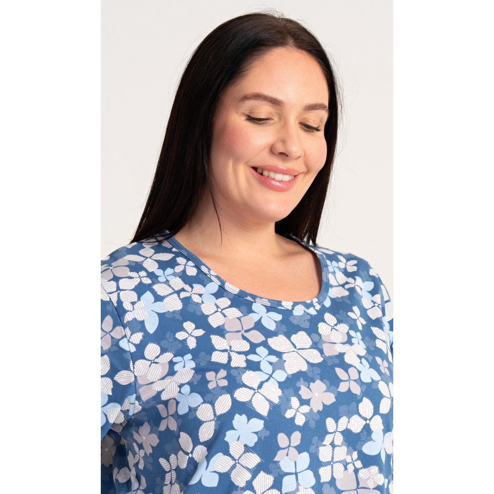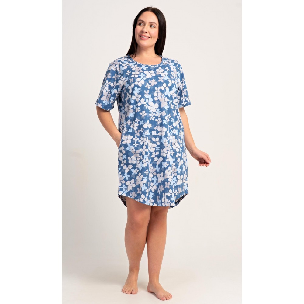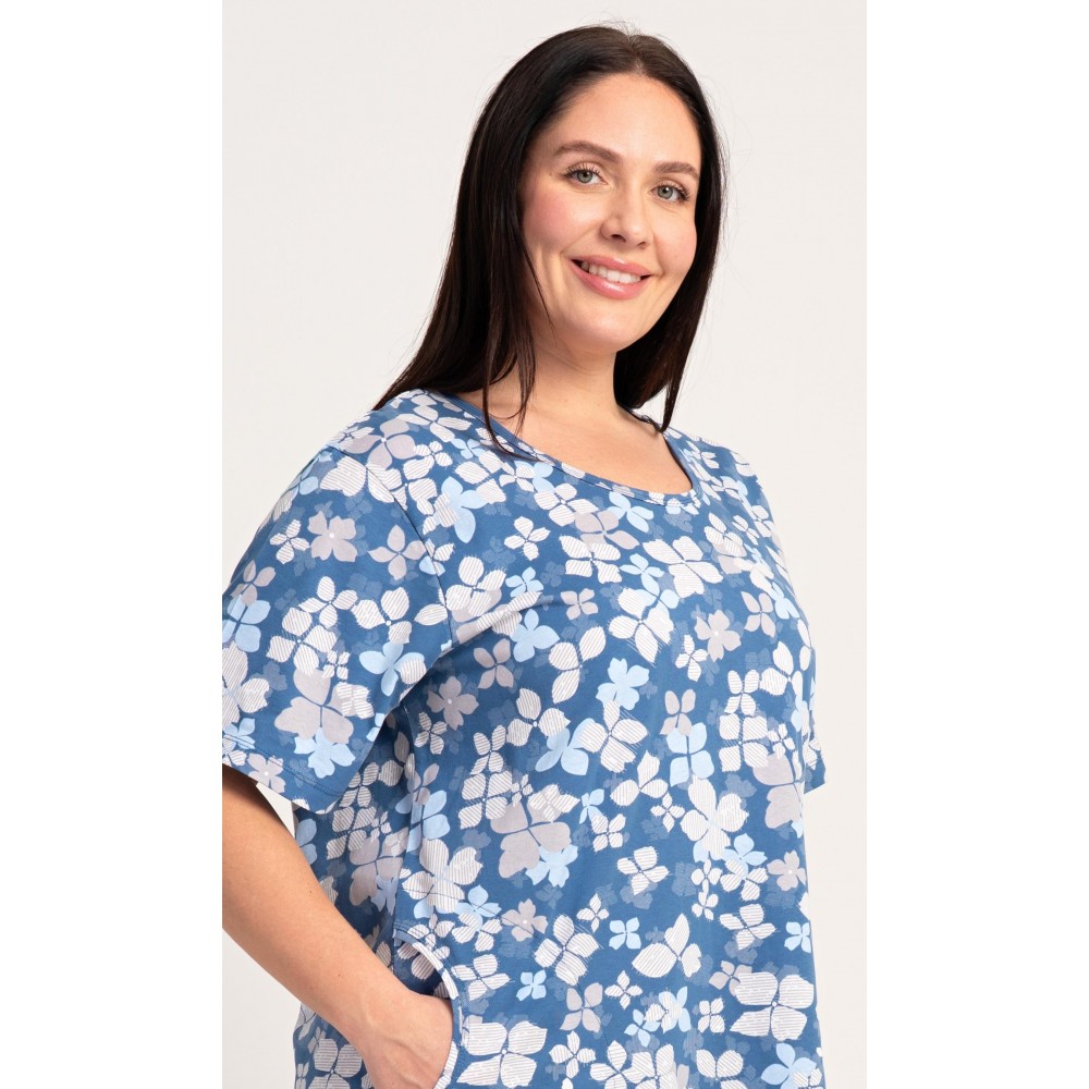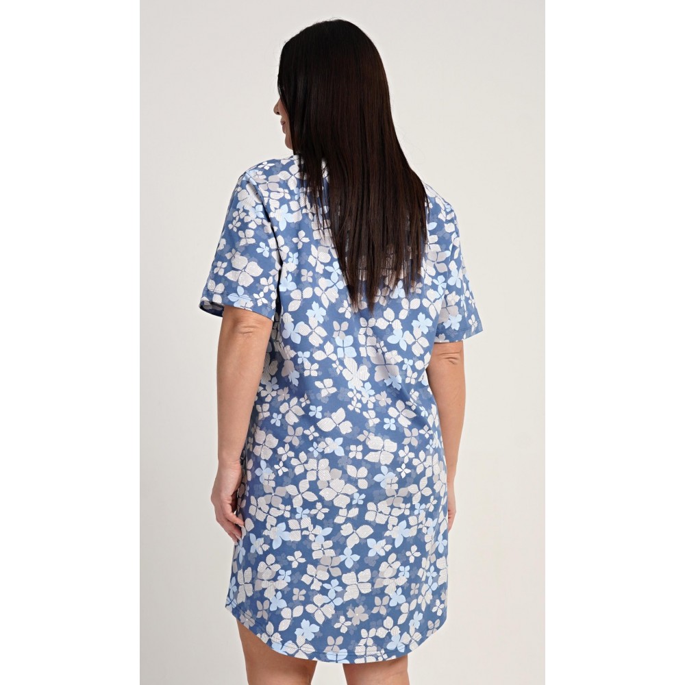 Dámské bavlněné domácí šaty s krátkým rukávem Diana. Domácí jednobarevné šaty s kulatým výstřihem a kapsami zdobí květy. Použitý bavlněný materiál je příjemný a poddajný na dotek. Šaty jsou pohodlné, vhodné na spaní i na denní nošení.