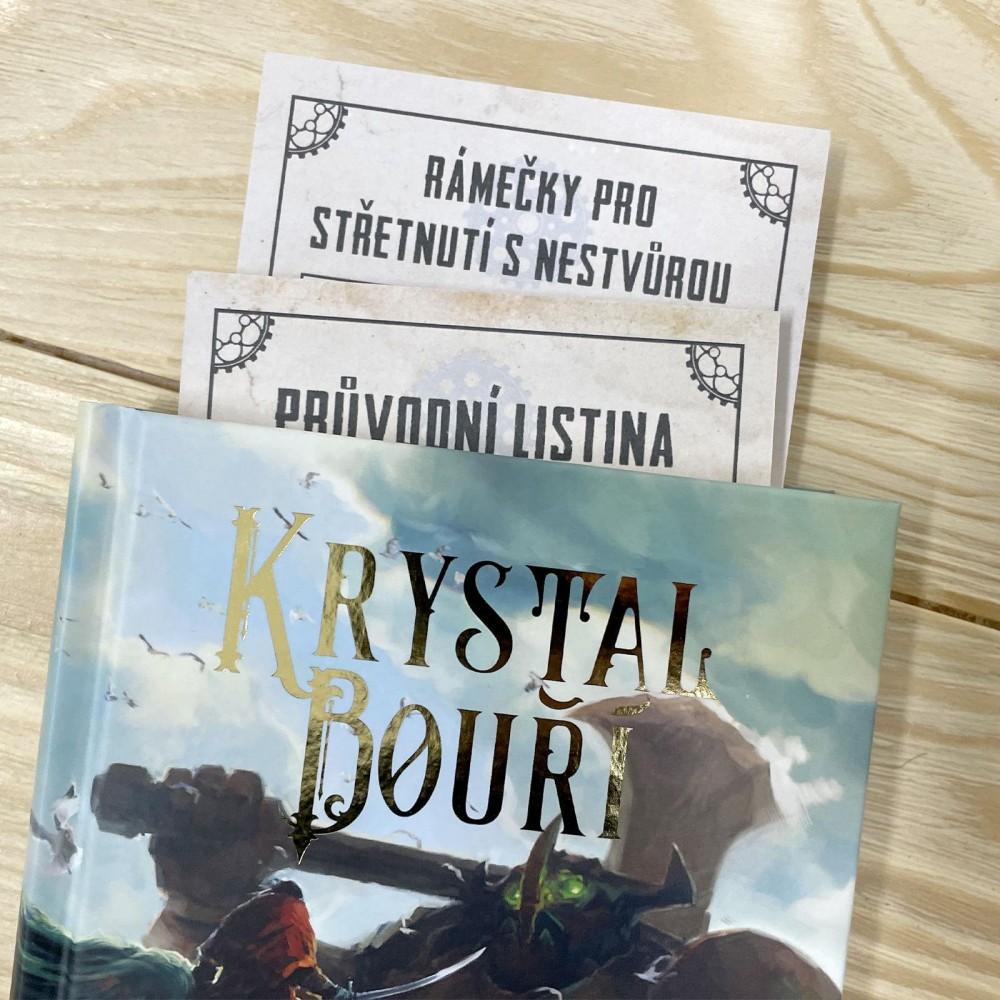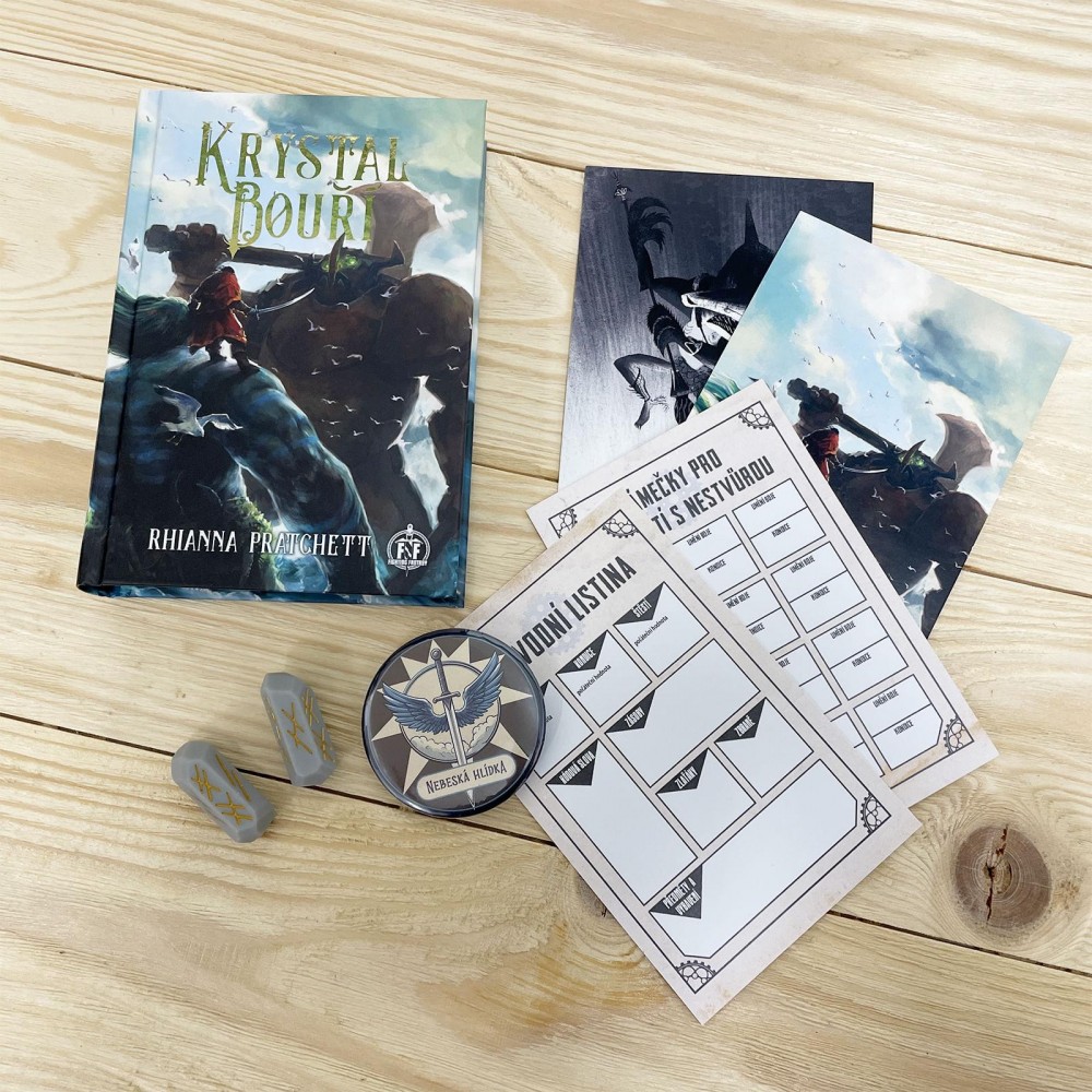 Vydej se do vznášejícího se souostroví Pangarie jako člen Nebeské hlídky a čel hrozbě, která může zničit celý svět. Když se ostrůvek Nimbus zřítí do Oceánu bouří, je na tobě prozkoumat zbylé ostrovy, bojovat s bouřemi a mořskými příšerami a pokusit se vyzdvihnout Nimbus z hlubin. Tento gamebook z legendární série Fighting Fantasy, poprvé v češtině, pochází z pera Rhianny Pratchett, dcery slavného spisovatele Terryho Pratchetta. Připrav se na napínavé dobrodružství, kde každé tvé rozhodnutí ovlivní osud Pangarie. Sběratelský komplet obsahuje kromě knihy Krystal bouří také unikátní kostky ve tvaru krystalu, záložku, dvě pohlednice s motivy z knihy a odznak Nebeské hlídky. Obsah kompletu: Krystal bouří Unikátní kostky ve tvaru krystalu (2xk6) Průvodní listina ve formě záložky Dvě jedinečné pohlednice s motivy z knihy Placka odznak Nebeské hlídky
