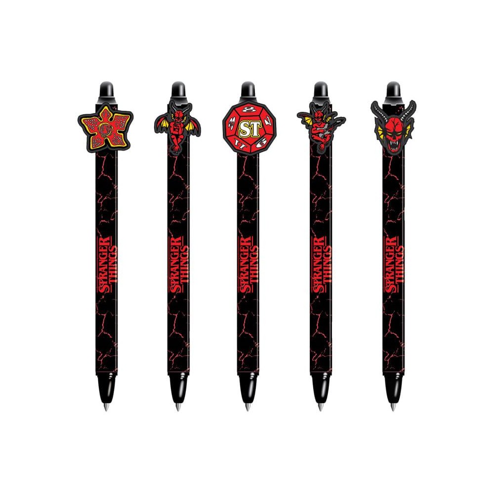 Ať už do školy, na doma nebo do kanceláře, gumovací pero pro fanoušky seriálu Stranger Things od Netflixu ti bude skvělým pomocníkem! Už nemusíš přepisovat ani škrtat. Pero obsahuje gelový modrý inkoust, který můžeš kdykoliv vymazat pomocí gumovací koncovky. Tvé zápisky a poznámky budou nyní bezchybné a precizní – žádný strach z chyb! Pero má 5 různých ozdobných zakončení a ty obdržíš náhodně vybraný kus! Protože překvapení, ta jsou nejlepší!