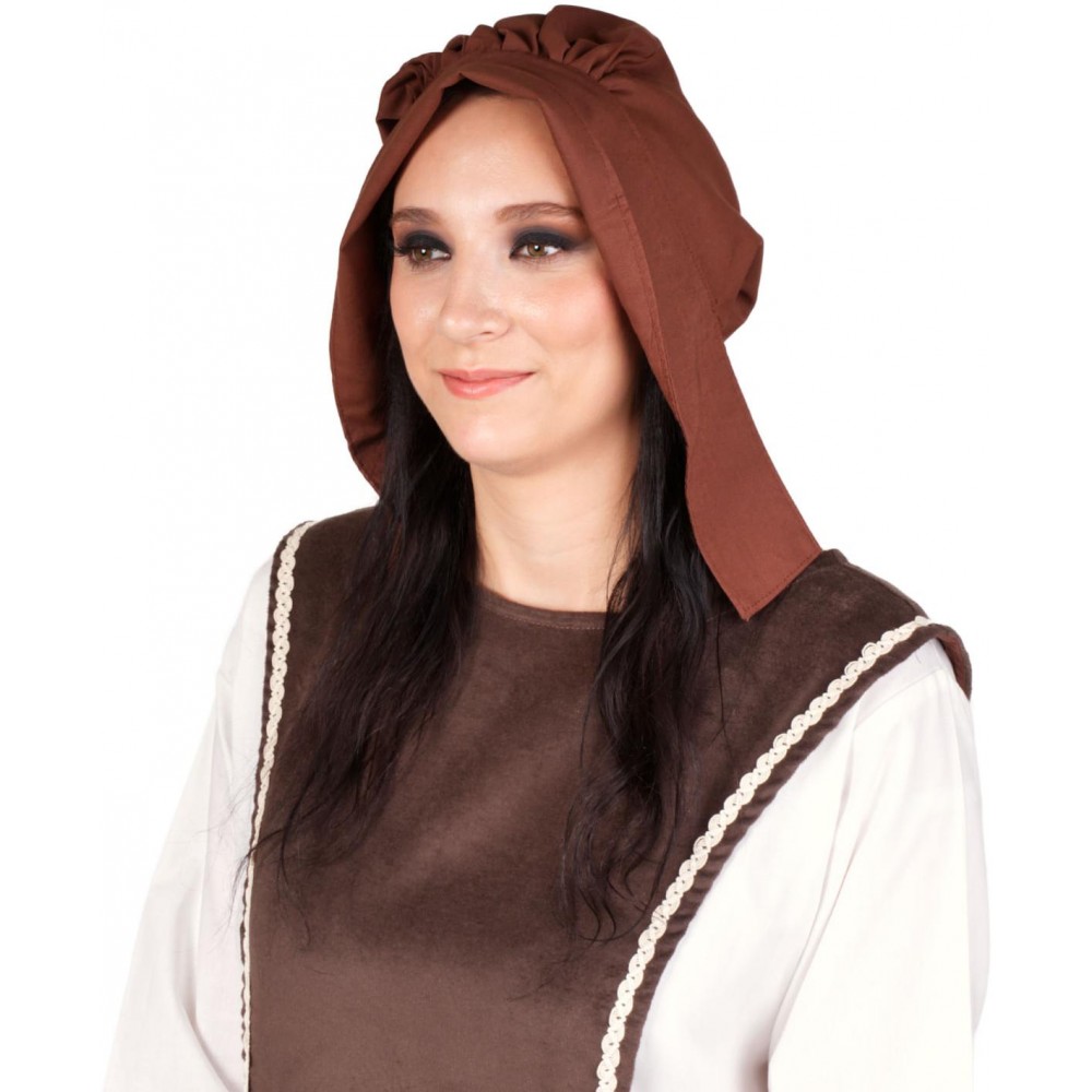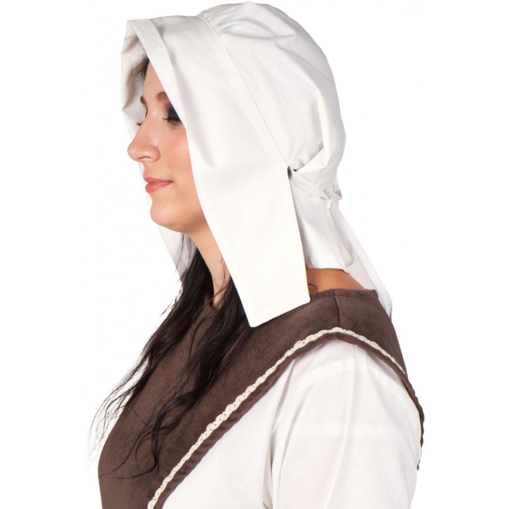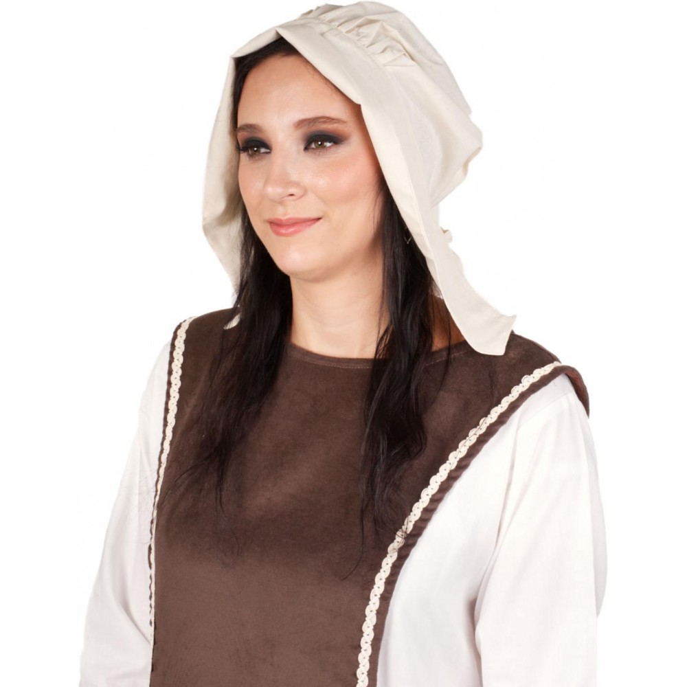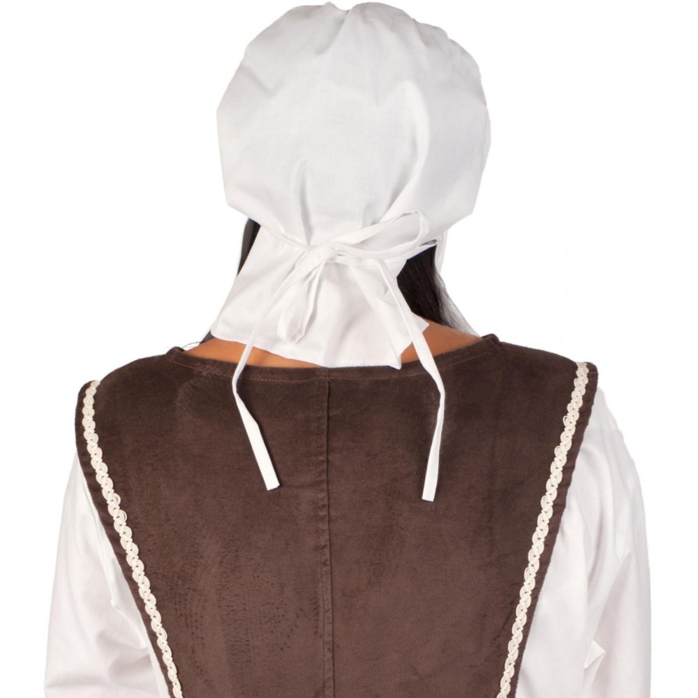 Plátěný čepec se zesíleným okrajem vhodný k dámskému kostýmu z nižší společnosti. Nezbytná pokrývka hlavy pro děvečky a nádenice. Díky stužkám k zavázání perfektně drží na hlavě i při pohybu. Velikost je univerzální, k mání v několika barvách. Více o použitém materiálu se dočtete zde: popis materiálů.