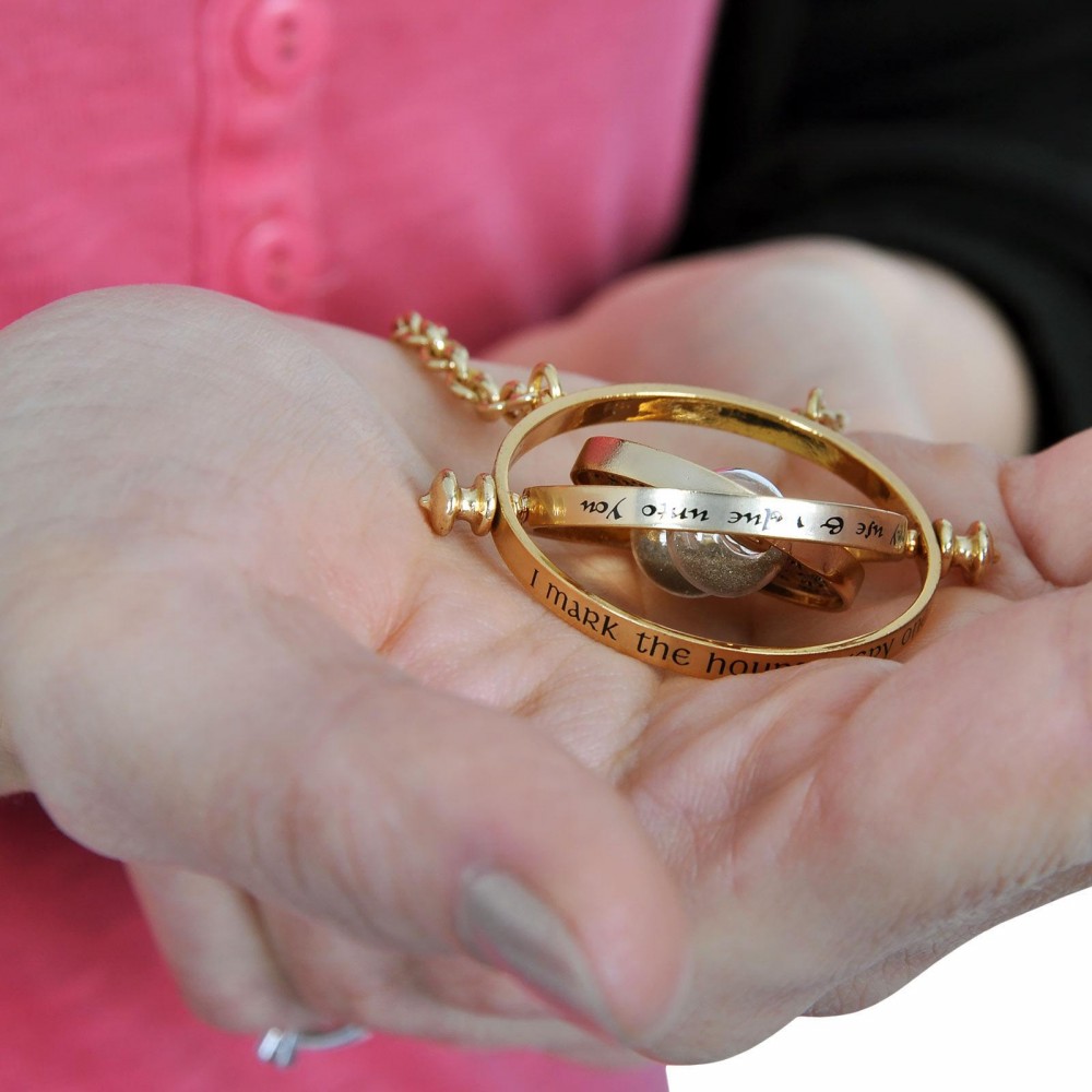Autentická replika obraceče času z filmu Harry Potter a vězeň z Azkabanu. Jedná se o nástroj, kterým se lze vracet v čase. S jeho pomocí zvládala Hermiona Grangerová svůj přeplněný rozvrh a právě on pomohl zachránit hrdinům příběhu nejeden život. Jednotlivé prstence jsou otočné, uprostřed jsou miniaturní přesýpací hodiny. Průměr obraceče je cca 3,5 cm, je opatřen řetízkem (délka 45 cm). Je pozlacený 24 karátovým zlatem. Součástí je ozdobná krabička se zrcátkem. Jedná se o filmovou dekorační repliku, pro běžné nošení není vhodná a může se opotřebit či zoxidovat.