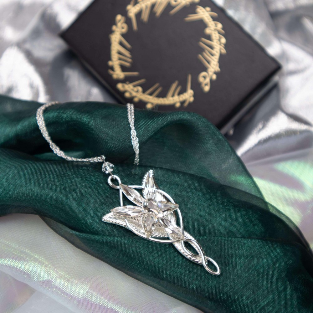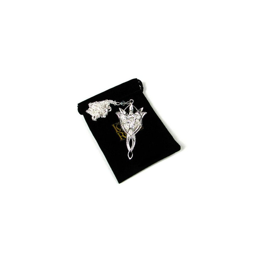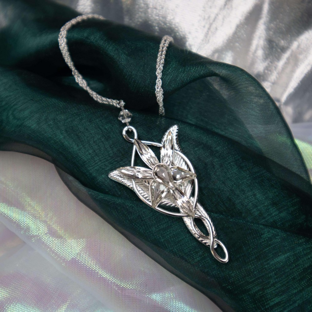 Postříbřený šperk Evenstar s krystaly Swarowski, jež nosila Arwen zvaná též Večernice, Elrondova dcera. Jedná se o repliku z filmu Pán prstenů, velmi pečlivě zpracovanou (pochází od osvědčeného výrobce filmových replik, firmy Noble Collection). Součástí je i jemný postříbřený řetízek, plátěný pytlík na šperk a krabička. Výška šperku je cca 5 cm. Šperk není určen ke každodennímu nošení na holé kůži - vlivem potu může časem postříbření zoxidovat.