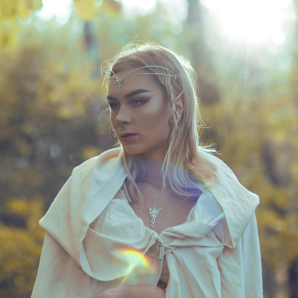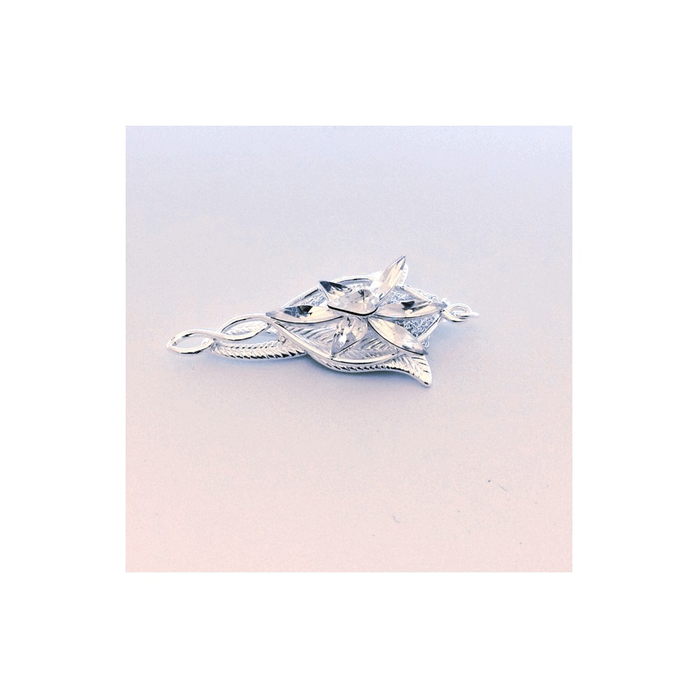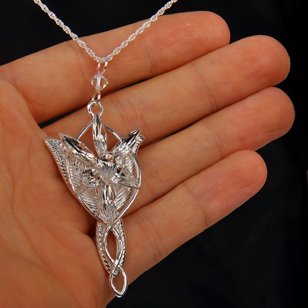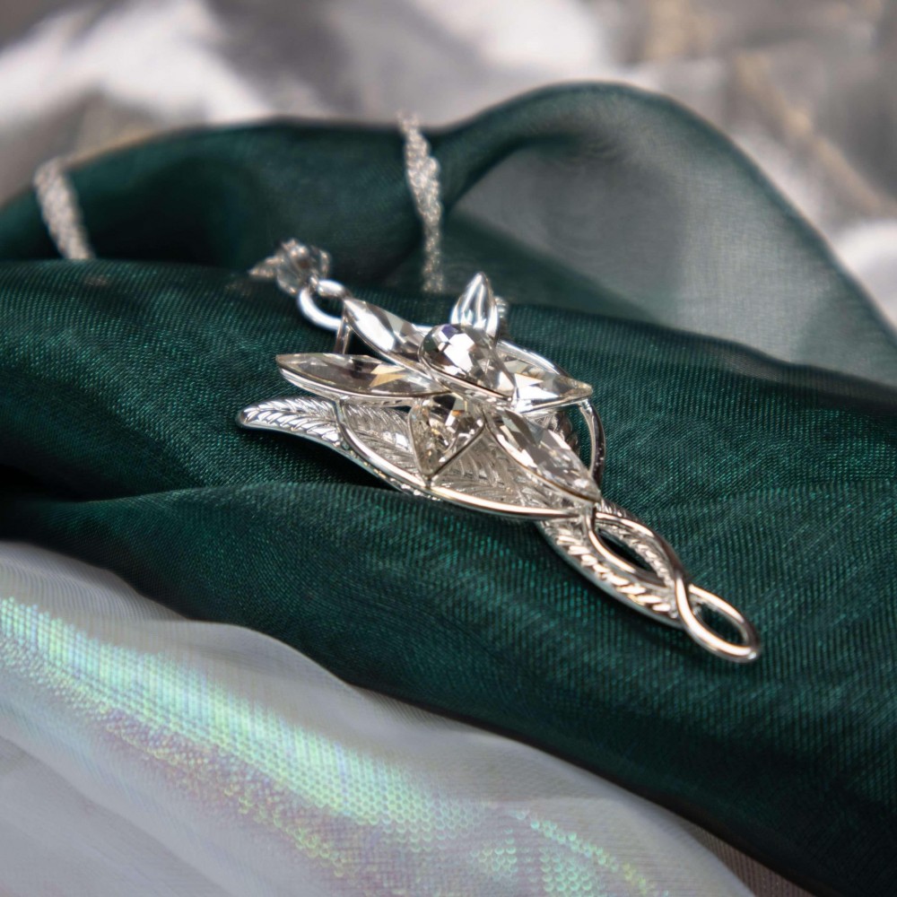 Postříbřený šperk Evenstar s krystaly Swarowski, jež nosila Arwen zvaná též Večernice, Elrondova dcera. Jedná se o repliku z filmu Pán prstenů, velmi pečlivě zpracovanou (pochází od osvědčeného výrobce filmových replik, firmy Noble Collection). Součástí je i jemný postříbřený řetízek, plátěný pytlík na šperk a krabička. Výška šperku je cca 5 cm. Šperk není určen ke každodennímu nošení na holé kůži - vlivem potu může časem postříbření zoxidovat.