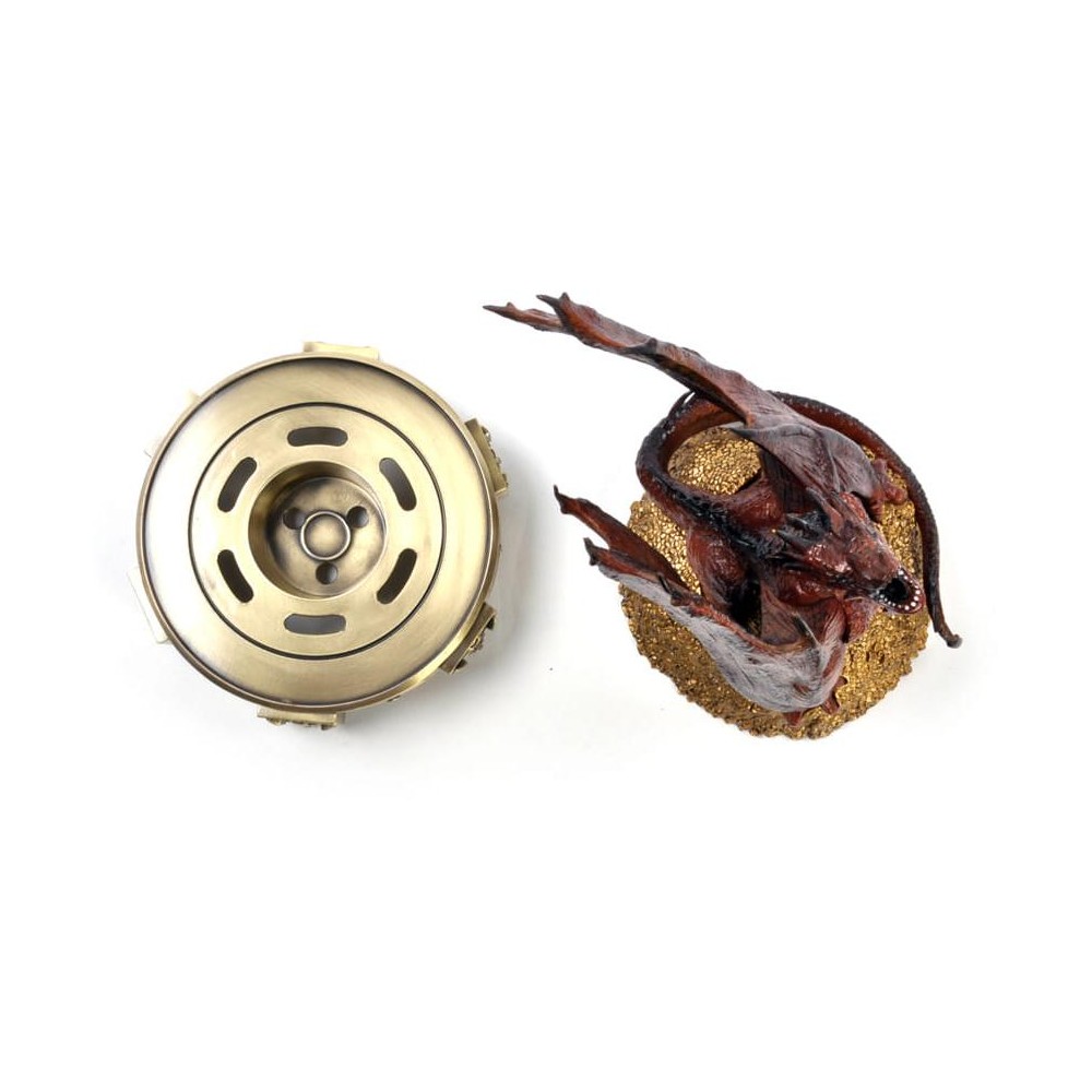 Detailně propracovaná aromalampa na vonné esence připomíná mocného draka Šmaka z filmové trilogie Hobit. Vnitřek nádoby je uzpůsobený pro kadidlo. Po jeho zapálení začne z tlamy draka vystupovat kouř. Jedná se o velice pěknou dekoraci, která udělá radost. Kadidlo není součástí balení.