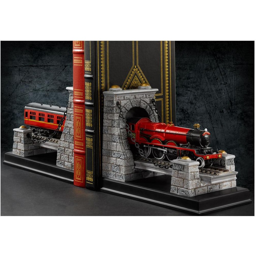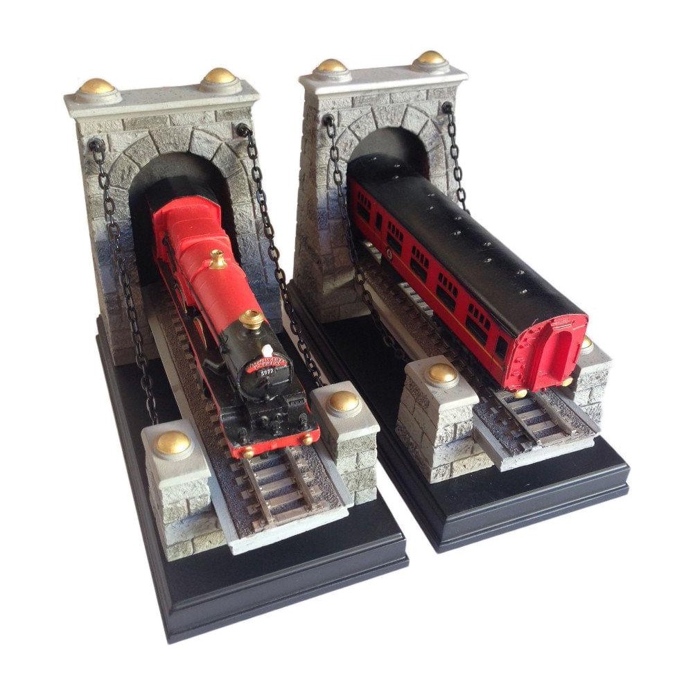Vaše magické grimoáry, lexikony s kouzly a almanachy (a samozřejmě v neposlední řadě knihy z univerza Harryho Pottera) se mohou stát skvostnou dekorací se zarážkami na knihy s Bradavickým expresem objevujícím se ve filmovém zpracování Harry Potter. Tato ručně malovaná dvojice zarážek je detailně zpracovaná a díky stěnám představujícím začátek a konec tunelu vytvoří ve vaší polici dojem projíždějícího vlaku skrz knihy. Všem, kdo si oblíbili svět malých a velkých kouzelníků, čarovných bytostí a napínavých fantasy dobrodružství, zarážka výtečně poslouží k vystavení oblíbených literárních titulů.