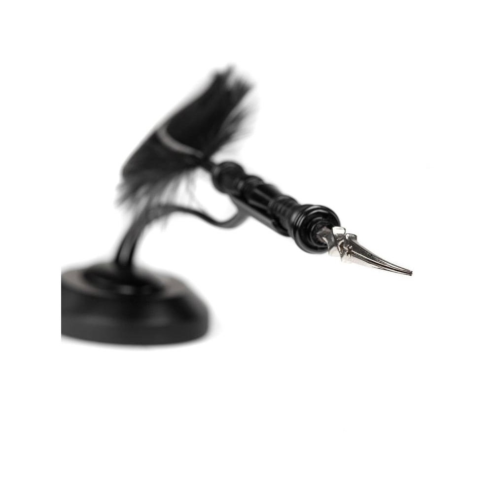 Inkoust nebudete potřebovat,“ odpověděla profesorka Umbridgeová se sotva znatelným podbarvením smíchu v hlase. Harry tedy přiložil hrot brku k papíru a napsal: Nemám vykládat lži. Překvapeně vyjekl bolestí. Slova se na pergamenu objevila, jako by byla napsána zářivě červeným inkoustem. Současně se tatáž slova objevila na hřbetu Harryho pravé ruky, vrytá do jeho kůže, jako by mu po ní někdo přejel skalpelem Brk věčně se usmívající, ale přesto nesnesitelné a neoblíbené Dolores Umbridgeové. Autentická replika mučícího nástroje pro neposlušné žáky Bradavic podle filmového zpracování díla J. Rowlingové - Harry Potter.