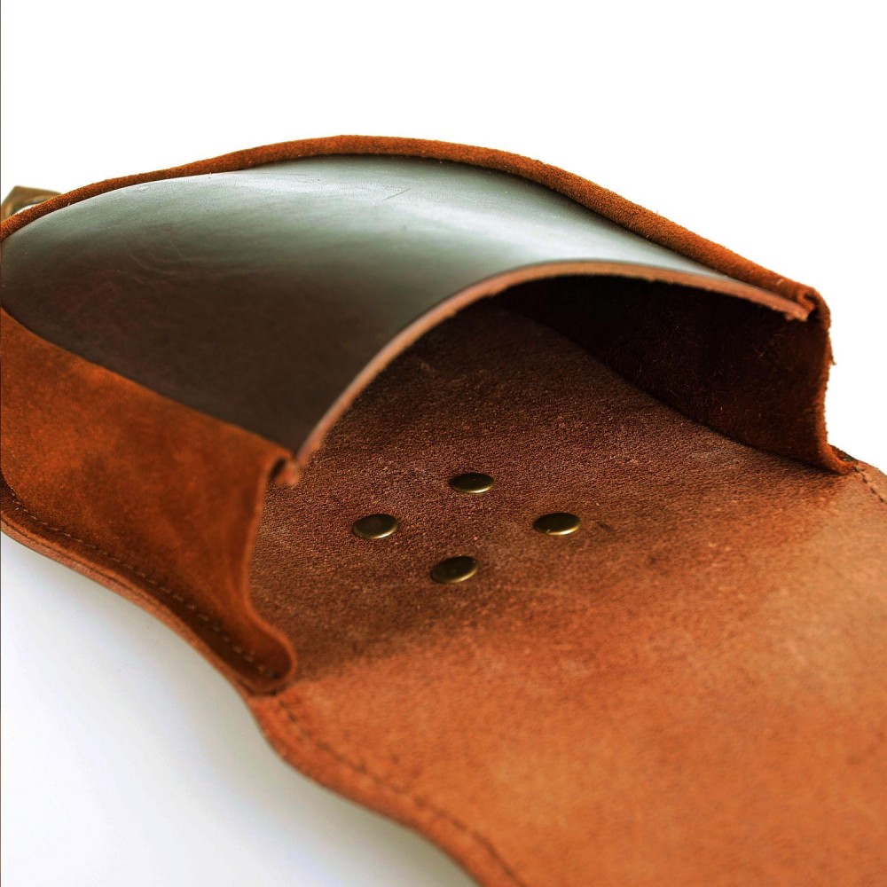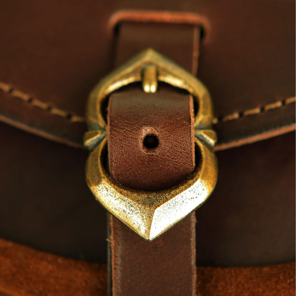Kožená taštice volně inspirovaná historickou předlohou je určená k nošení na opasku. proti otevření je zajištěna elegantním zapínáním s přezkou. Díky svým rozměrům pojme spoustu drobností, hodí se k libovolnému fantasy či historickému kostýmu. Taštici vyrábíme ručně v naší sedlářské dílně z kvalitní hovězí kůže tloušťky 2 mm, k mání je v černé nebo hnědé povrchové úpravě.