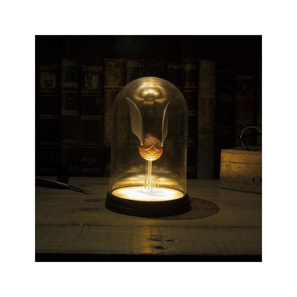 Pokud se vám zatím nepodařilo ve famfrpálu chytit Zlatonku, nevěšte hlavu, protože si ji můžete vystavit a posvítit si na ni v luxusní lampě inspirované napínavými zápasy ve světě Harryho Pottera. Zlatá, rychle létající kulička s křídly se usadila pod skleněnou dekorací napájenou USB kabelem. Rozjasněte svůj stůl, noční stolek anebo jiné místo, které máte rádi a kde se bude krásně vyjímat. Lampa se Zlatonkou je nádherný dárek pro všechny fanoušky knih od spisovatelky J. Rowlingové, nadšené hráče famfrpálu a také ty, kteří rádi sní a fantazírují.