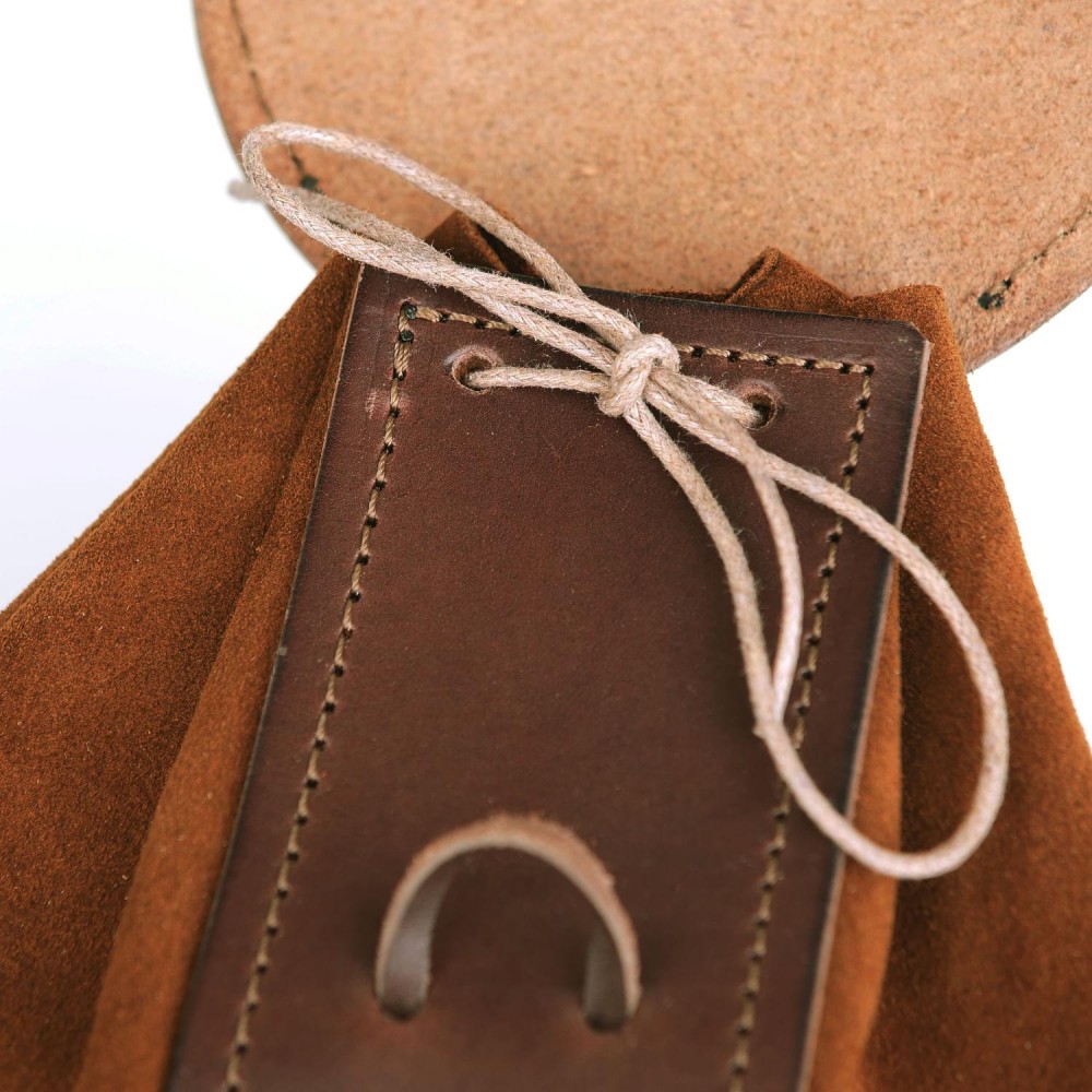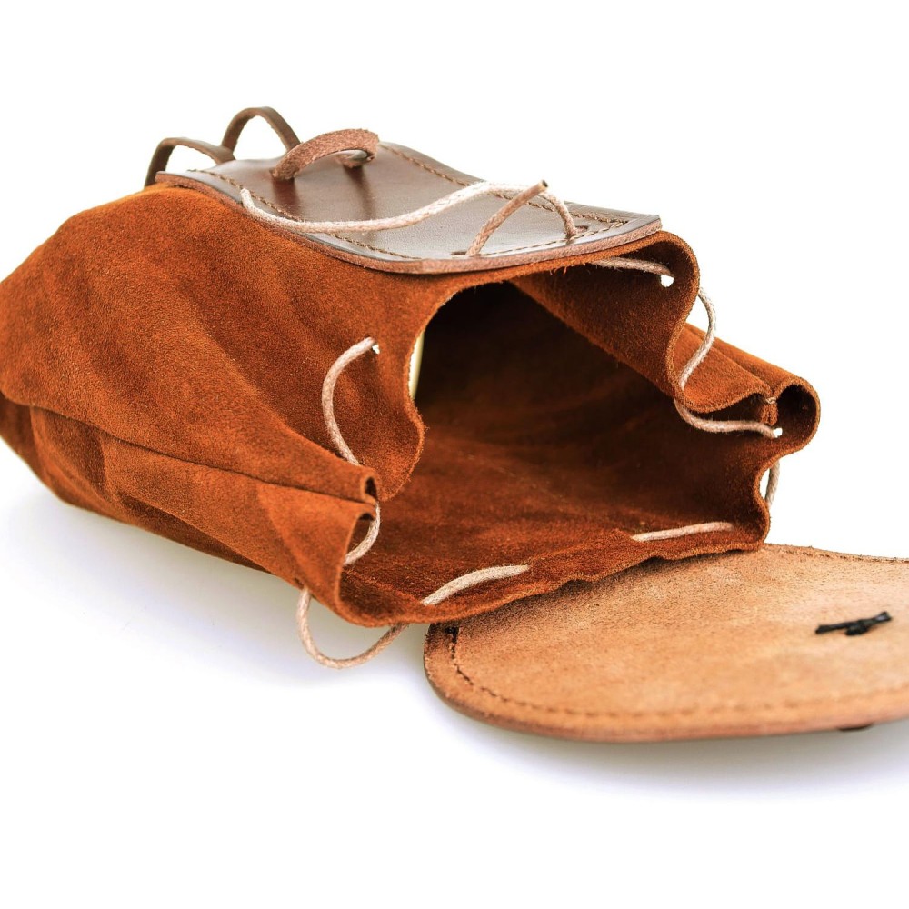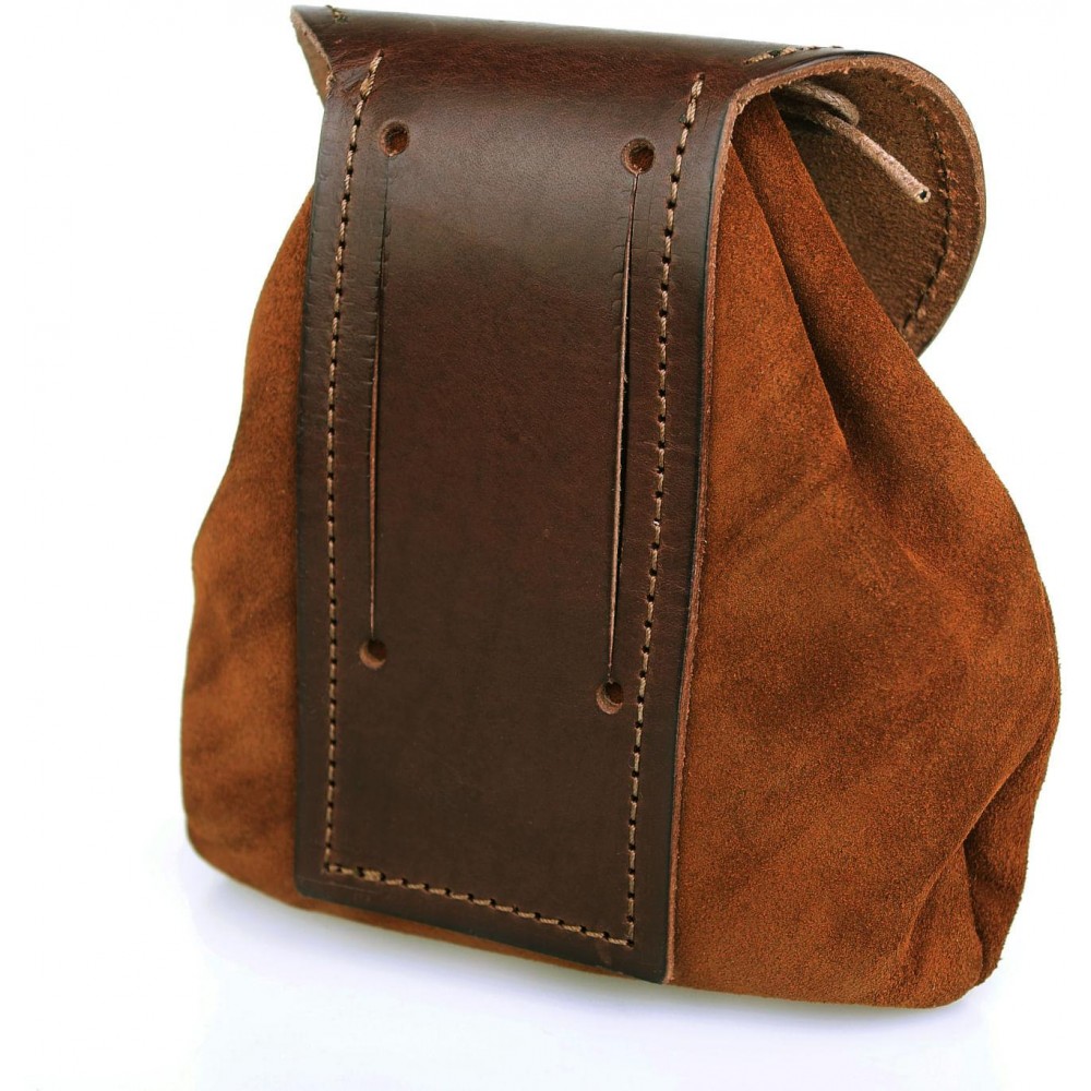 Elegantní kožená taštice s víkem je určena k nošení na opasku. Hlavní část je zhotovena z tzv. štípenky, víko je z 2 mm hrubé hlazené kůže. Má pevné švy, je ručně vyrobena z kvalitní kůže v naší brašnářské dílně. Taštice je praktickým doplňkem pro libovolný fantasy či historický kostým, pojme všelijaké drobnosti, proti otevření je zajištěna zapínáním kožený knoflík.
