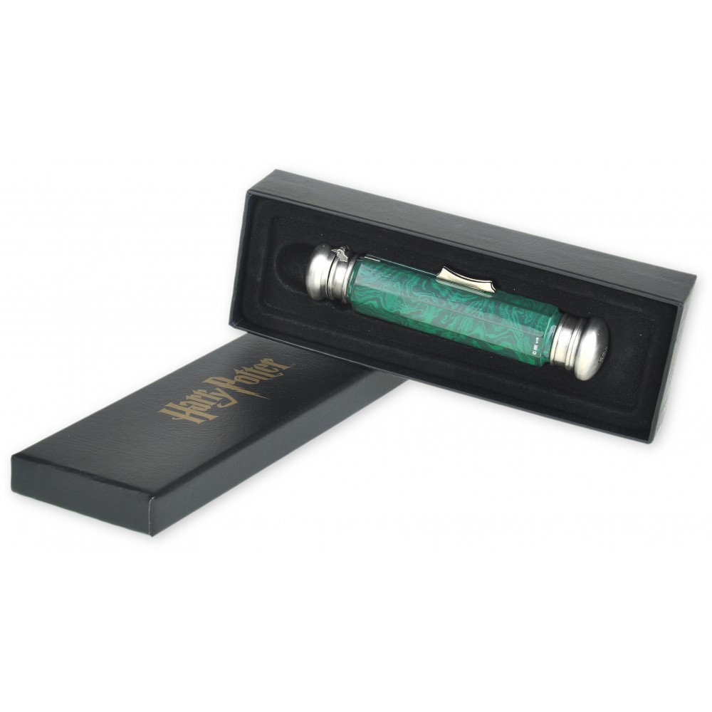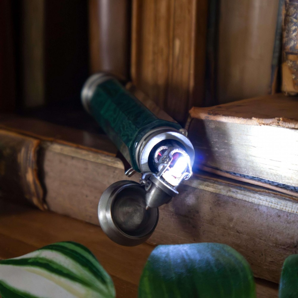 „Poslední vůle a závěť Albuse Percivala Wulfrica Briana Brumbála.’ ano, tady to je... ‚Ronaldu Biliovu Weasleymu odkazuji své zhasínadlo, doufám že si na mne vzpomene, až jej bude užívat.’” Brousek vytáhl ze sáčku objekt, který již Harry viděl: Vypadalo to jako stříbrný zapalovač, ale měl schopnost, jak Harry věděl, zhasínat všechna světla v okolí a zase je rozsvítit jediným cvaknutím. Brousek se předklonil a podal zhasínadlo Ronovi, který si je vzal a s překvapeným výrazem je začal protáčet mezi prsty. Replika Brumbálova magického zhasínače (deluminator) z filmu Harry Potter. Tento pozoruhodný magický předmět je cca 10 cm dlouhý, po stisknutí tlačítka se rozsvítí. V ceně je černá dárková krabička. Odkazy video recenze produktu