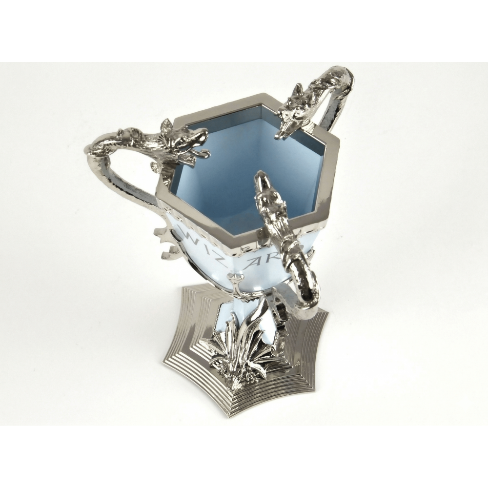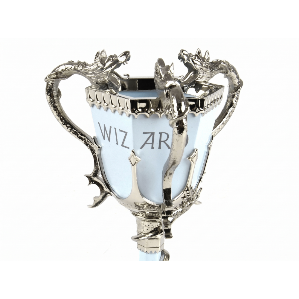 Odměnou za vyřešené úkoly v turnaji tří kouzelníků z příběhu Harry Potter a Ohnivý pohár (Harry Potter and the Goblet of Fire) byl vítězný pohár. Jeho úžasnou replikou můžete ozdobit váš stůl anebo například vitrínu se sběratelskými předměty. Nadchne vás už jen pohled na detailně propracovanou strukturu tvořenou draky obtáčejícími kalich. Rozšiřte si sbírku o úchvatnou repliku filmového artefaktu.