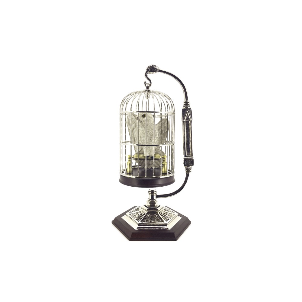 Staňte se vlastníky úchvatné zmenšené repliky klece se sovicí sněžnou Hedvikou (v angličtině Hedwig) vlastněnou čarodějem Harrym Potterem. Hedvika byla Harryho věrnou sovou a létala s poštou, vzkazy a balíčky. Tato nádherná dekorace kopíruje její útočiště a odpočívadlo. Už víte, kam si tuto precizní filmovou dekoraci umístíte? Výška klece i s podstavcem je cca 25 cm. Průměr podstavce je cca 13 cm.