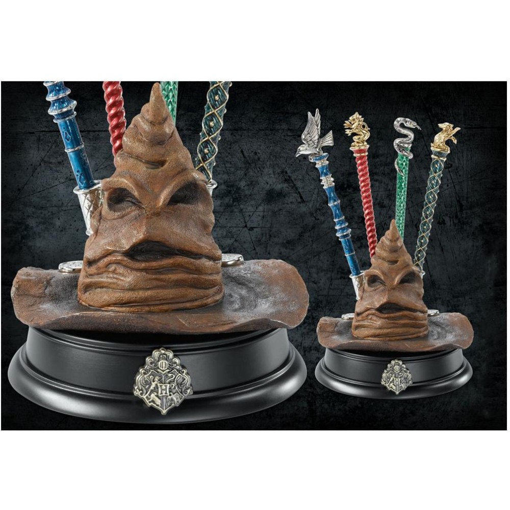 Nenaleznete vhodnějšího místa pro vaše kouzelnické propisky a tužky, než je tento jedinečný stojan v podobě Moudrého klobouku, který v příbězích o Harry Potterovi rozděloval studenty do čtyř bradavických kolejí a v hlavní zápletce sehrál důležitou roli. Na stabilní základně s charakteristickým školním erbem se nachází zamyšlený klobouk a za ním čtyři nástavce pro umístění propisek. Vyberte si ke stojanu z celé řady nádherných propisek.