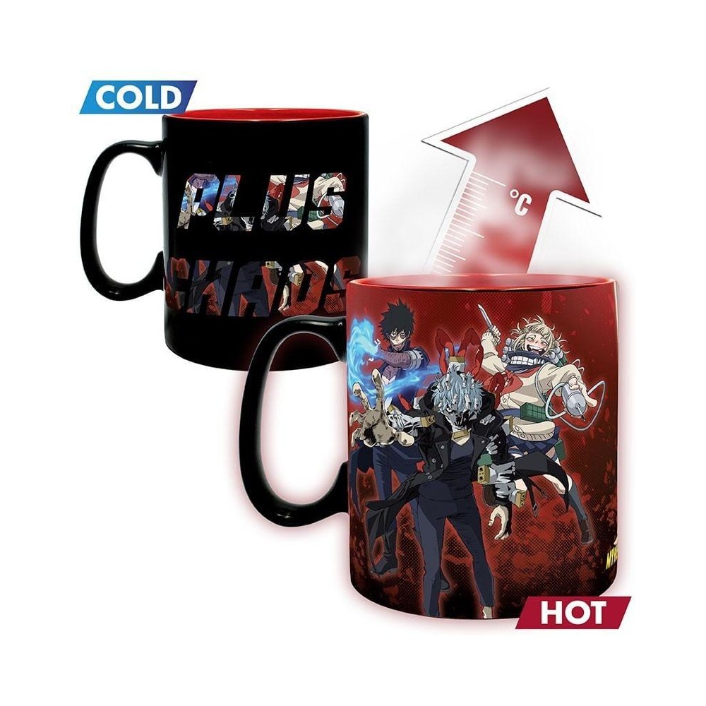 Patříte do týmu Plus Ultra nebo tým Plus Chaos? Ať už si zvolíte kterýkoliv, z hrnku pro fanoušky japonské mangy My Hero Academia bude chutnat všem. Stačí nalít teplý nápoj a tým chaosu se rázem promění v tým ultra! Hrnek není vhodný do myčky nádobí ani do mikrovlnné trouby.