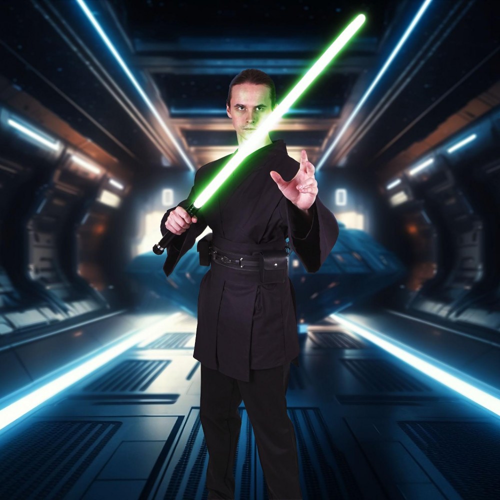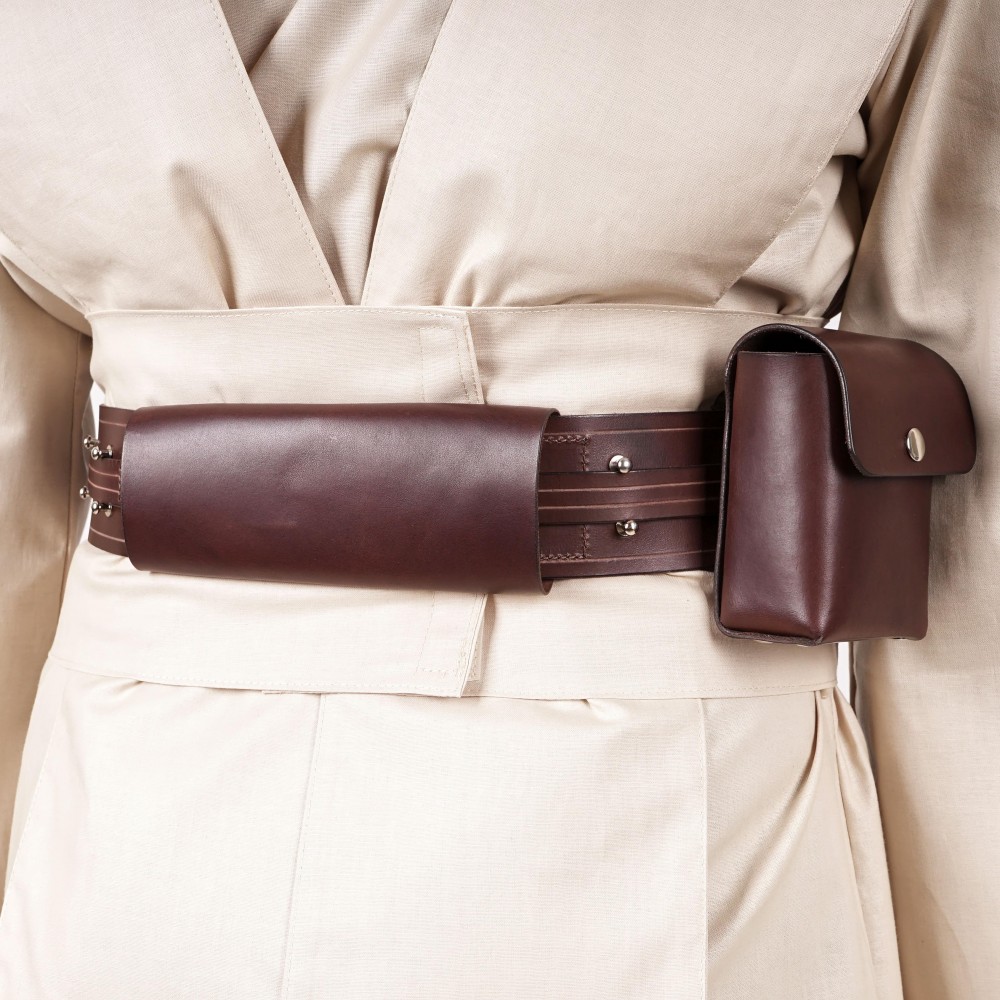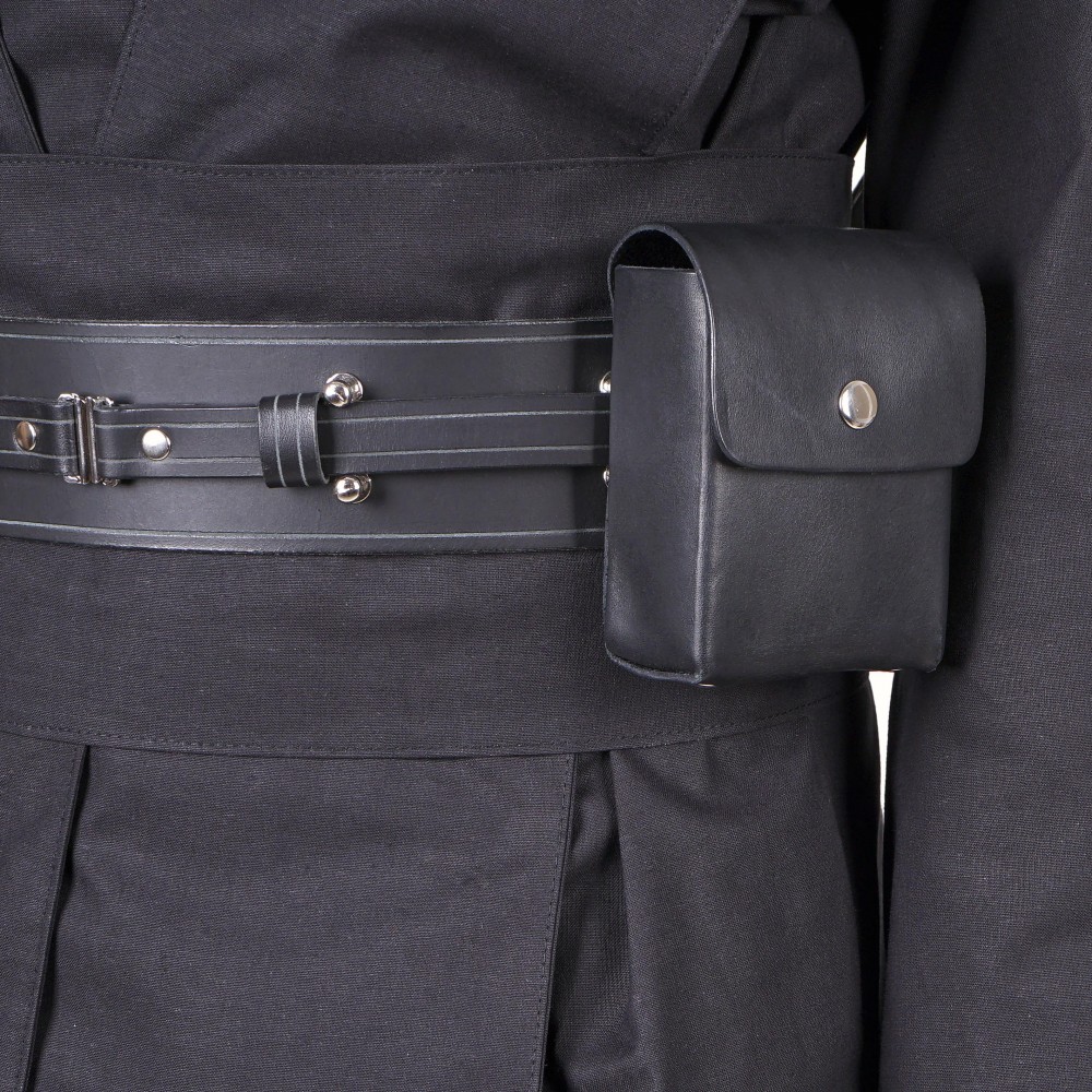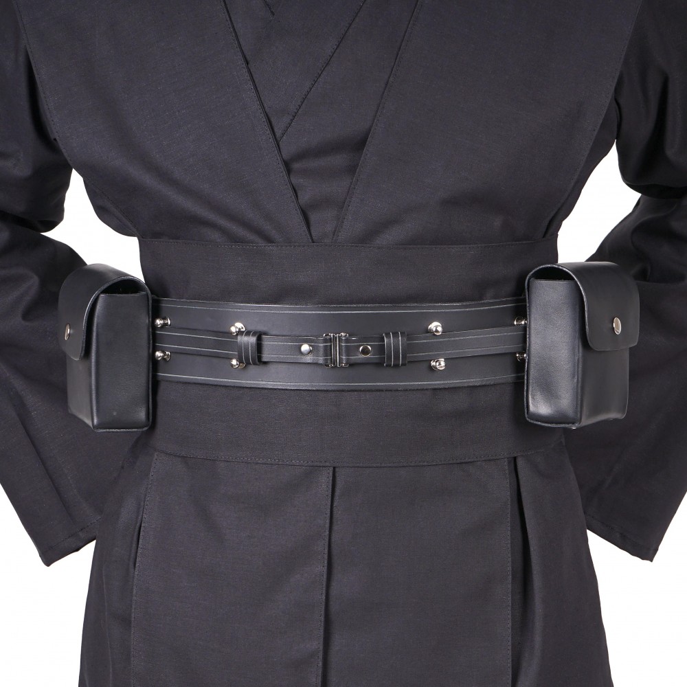 Stylový a praktický kožený opasek vytvořený podle kostýmů Jedi z prequelové trilogie Star Wars. Perfektně s ním doplníte kostým padawana, rytíře i mistra Jedi. Navíc je ideální k zavěšení vašeho světelného meče. Kožený opasek Jedi pro vás šijeme ručně v naší dílně a je vyrobený z hovězí kůže prvotřídní kvality. Opasek je široký 6 cm, je zdobený menším páskem s dekorativní sponou a lemovaný sedlářskými nýty, aby co nejvíce připomínal opasky Jediů z filmové trilogie. Zapíná se na zádech pomocí širokého suchého zipu, který je při nošení skrytý a díky němu můžete upravit délku až o 5 cm. Opasek doplňují dvě praktické kapsy na kovové druky. Je v dostání ve dvou barevných variantách – černé a hnědé. Opasek se perfektně hodí k přepásání vrchní tuniky kostýmu rytíře Jedi. Rozhodně by vám neměl chybět ani světelný meč, který si na něj zavěsíte. Míry potřebné k objednávce: obvod pasu Jak se správně měřit Šijeme dle vašich přání Popis materiálů Opasek odpovídá oficiálním standardům Star Wars kostýmové organizace.