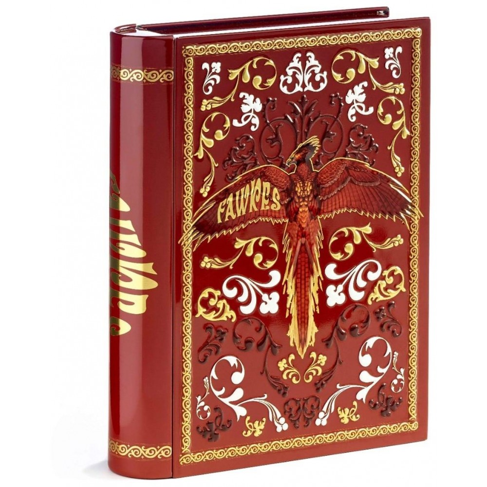 Krásná dárková sada má podobu kovové knihy s Fawkesem, fénixem profesora Albuse Brumbála z bradavické školy čar a kouzel. Uvnitř originální pokladničky najdete poklady ze světa Harry Pottera jako jsou gumička do vlasů, klíčenka odznak nebo náhrdelník! Jedinečný dárek pro malé i velké fanynky kouzelníků z magického světa J. K. Rowlingové.