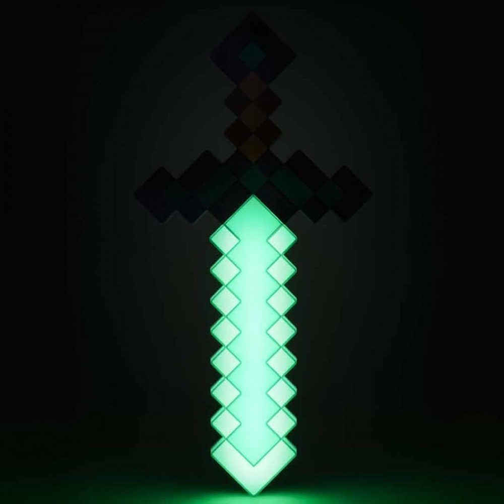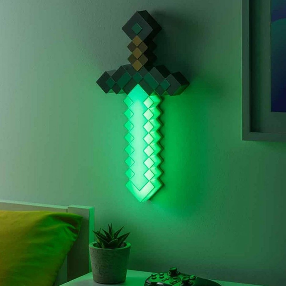 Lampa v podobě diamantového meče z kostičkového světa videohry Minecraft. Díky 3 světelným módům získá tvůj domov, herna nebo pracovna tu správnou atmosféru! Lampu si můžeš postavit na pracovní stůl, noční stolek nebo zavěsit na stěnu. Napájeno pomocí kabelu USB-C nebo 3 ks baterie AAA (nejsou součástí balení).