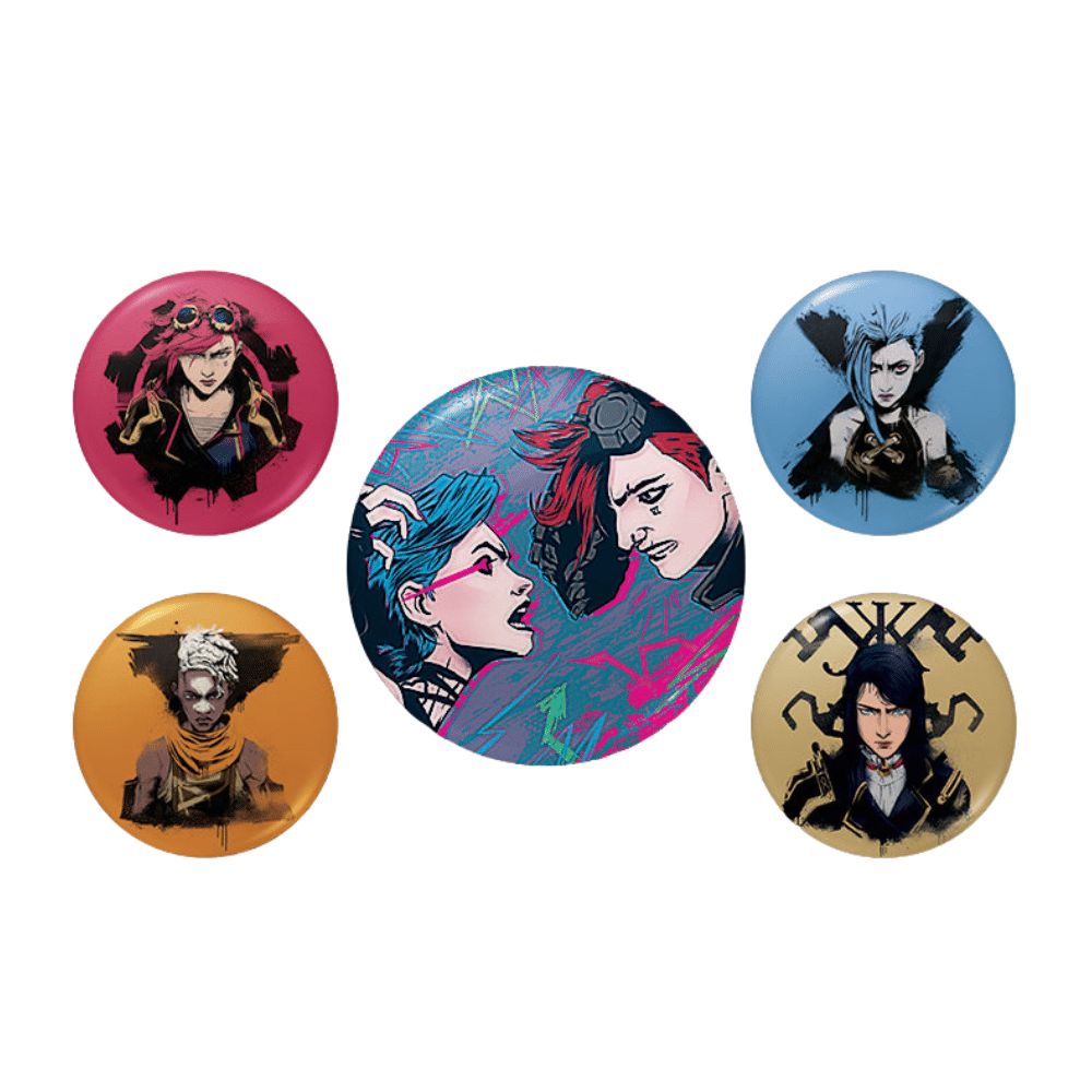 V sadě najdeš 5 ks placek s tvářemi postav z tvého oblíbeného animovaného trháku Arcane, mezi nimiž nechybí třeba Jinx, Vi nebo Ekko. Skvělý a stylový doplněk pro tvůj batoh, bundu nebo kabelku. Balení obsahuje 1x placku o průměru 3,8 cm a 4x placky o průměru 2,5 cm.