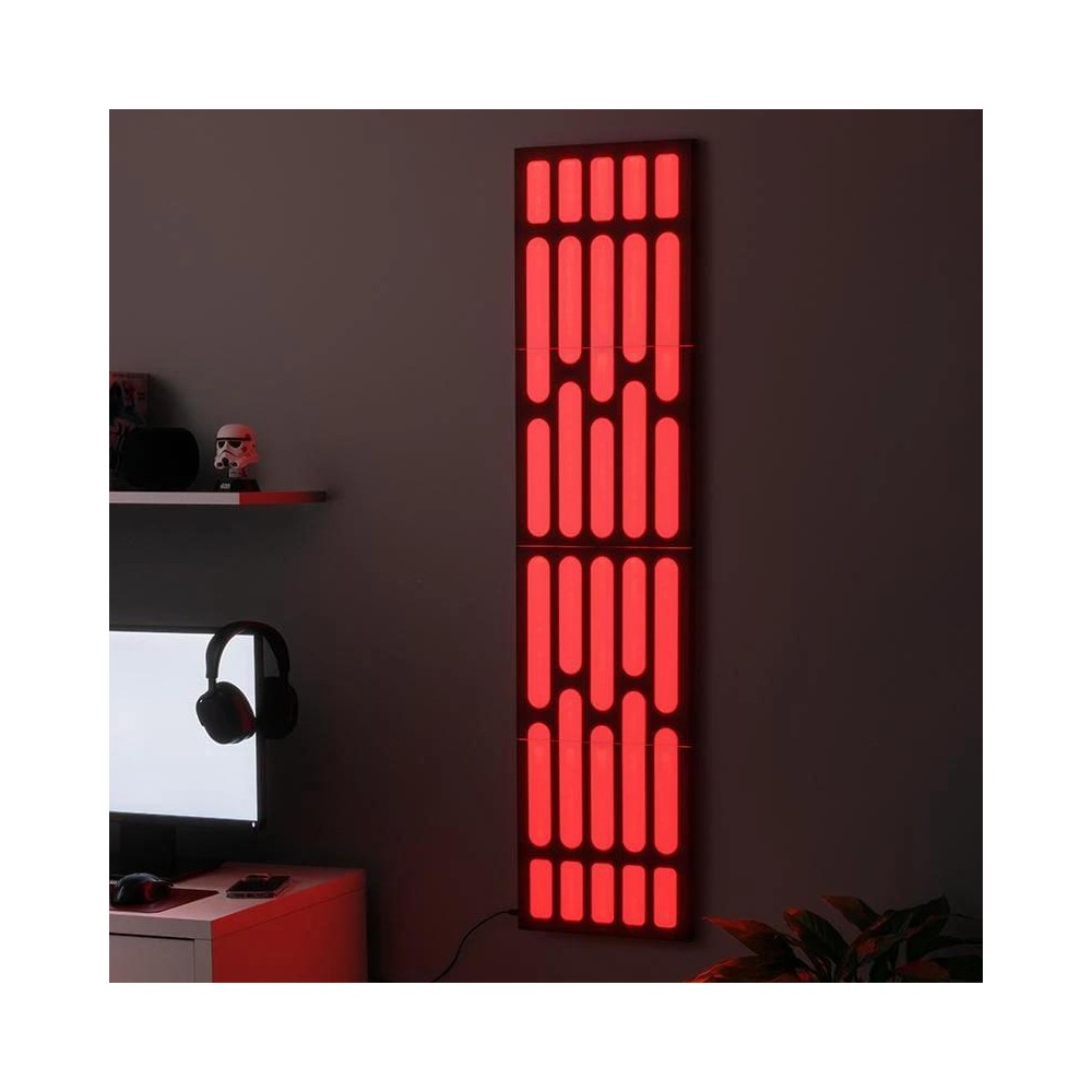 Tvůj pokoj už nebude nikdy jako dřív! Se světelným nástěnným panelem Star Wars se přemístíš na chodby Hvězdy smrti do společnosti hlídek Stormtrooprů a Darth Vadera, který se bezpochyby skrývá za nejbližším rohem. Tato výjimečná dekorace má svůj vlastní příběh. Je výsledkem spolupráce mezi kreativními mozky Entertainment Earth a Paladone. Jejich týmy inženýrů a designérů neúnavně pracovaly na oživení této ikonické části vesmíru Star Wars - chodby nechvalně známé Death Star (Hvězdy smrti) - dokud si nebyly jisty každým detailem. Světelné efekty můžeš pohodlně řídit pomocí dálkového ovladače, panel také reaguje na hudbu změnou barevných odstínů - bílého a červeného světla. Dopřej svému pokoji tuto zcela novou unikátní atmosféru. Výška panelu je 124 cm, součástí je napájecí USB kabel k připojení ke zdroji. Panel se nezapojuje přímo do sítě - mrkni na návod (PDF).