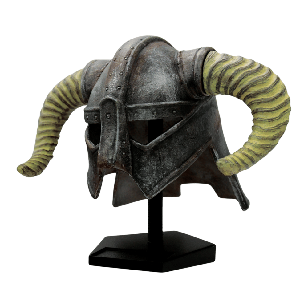 Laat Dovahkiin (neboli anglicky Last Dragonborn), bojovník s tělem smrtelníka a duší draka, jehož osudem je zničit zlého draka Alduina, je hlavním hrdinou hry The Elder Scrolls V: Skyrim a jeho železná přilba se stala synonymem pro tuto postavu. Tato zmenšená replika přilby z pryskyřice s ručně malovanými detaily a je celosvětově omezena na pouhých 5 000 kusů.Rozměry: Výška 148 mm, hloubka 188 mm, šířka 137 mm