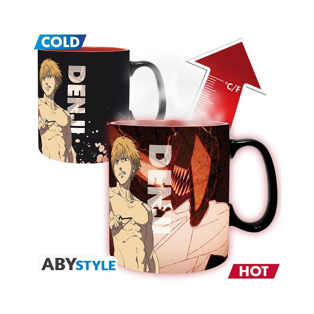 Vychutnej si svůj oblíbený nápoj s tímto unikátním měnícím se hrnkem Chainsaw Man s motivem Denjiho a Akiho! Jakmile do něj naliješ horký nápoj, hrnek se promění a odhalí ilustrace tvých oblíbených postav z této kultovní série. Perfektní doplněk pro všechny fanoušky anime a manga. Ideální na kávu, čaj nebo cokoli horkého – a také skvělý dárek! Hrnek není vhodný do mikrovlnné trouby ani do myčky nádobí.