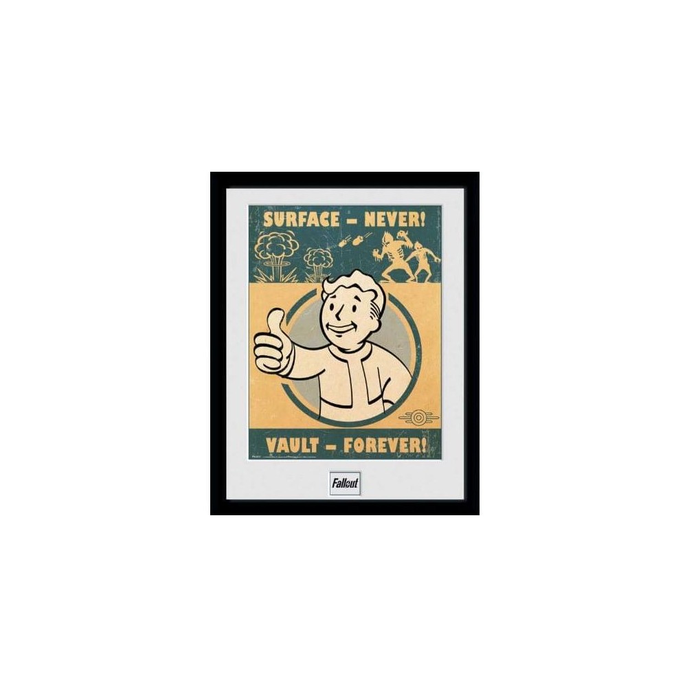 Zarámovaný obraz Surface Never Vault Forever z legendárního světa Fallout zachycuje ikonického Vault Boye v jeho typickém retro-futuristickém stylu. Dokonalý mix nostalgie, humoru a drsné atmosféry pustiny, který oživí každý prostor – od herního koutku až po pracovnu. Kvalitní tisk na fotografický papír a pevný rám dodávají obrazu elegantní vzhled, zatímco nerozbitné styrenové sklo zaručí dlouhou životnost. Rozměry obrazu jsou 44,5 x 34,5 cm.