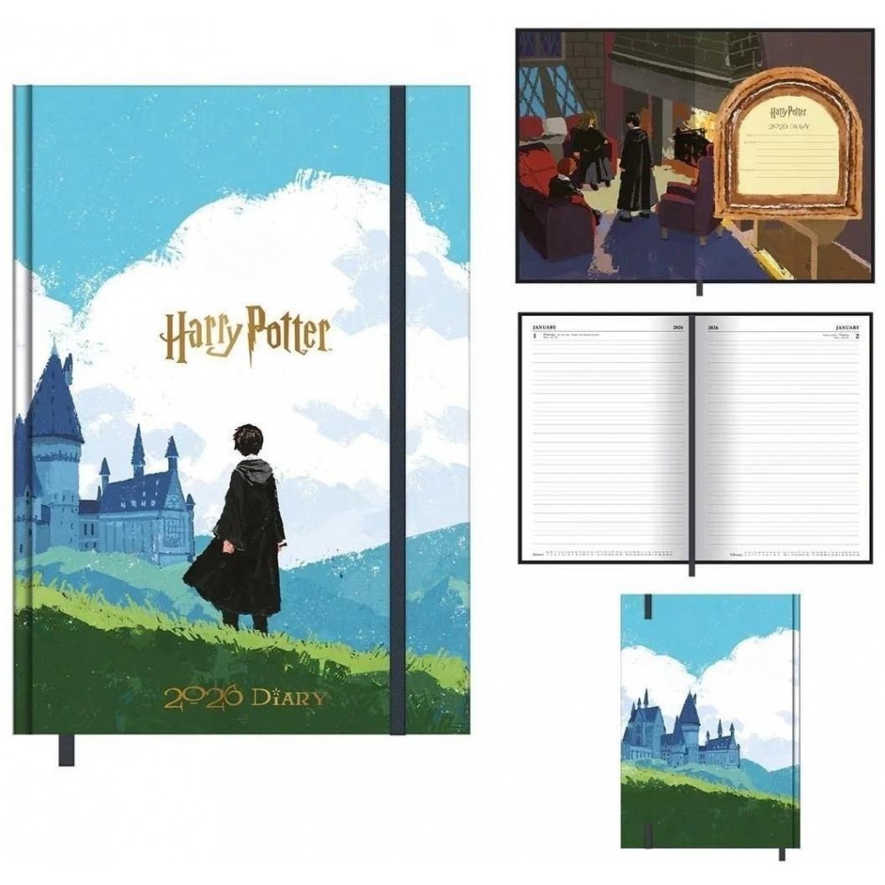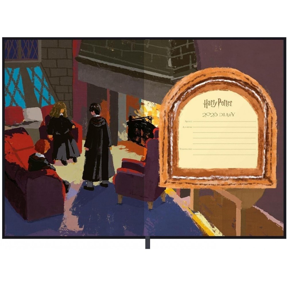 Diář s Harry Potterem pro rok 2026 v sobě spojuje praktičnost a magii kouzelného světa školáků z Bradavic! Nech se provázet po celý rok Harrym, Ronem, Hermionou a scénami z tvých oblíbených příběhů. Diář má linkované stránky, kam si můžeš zapisovat své schůzky s přáteli a čaroději, hodiny alchymie i další plány na neplechy. Diář v pevných deskách nabízí celkem 352 stran a je v angličtině, s informacemi o měnách, s anglickými metrickými jednotkami, svátky a jmény. Součástí diáře jsou také záložka a elastické poutko na uzavření.