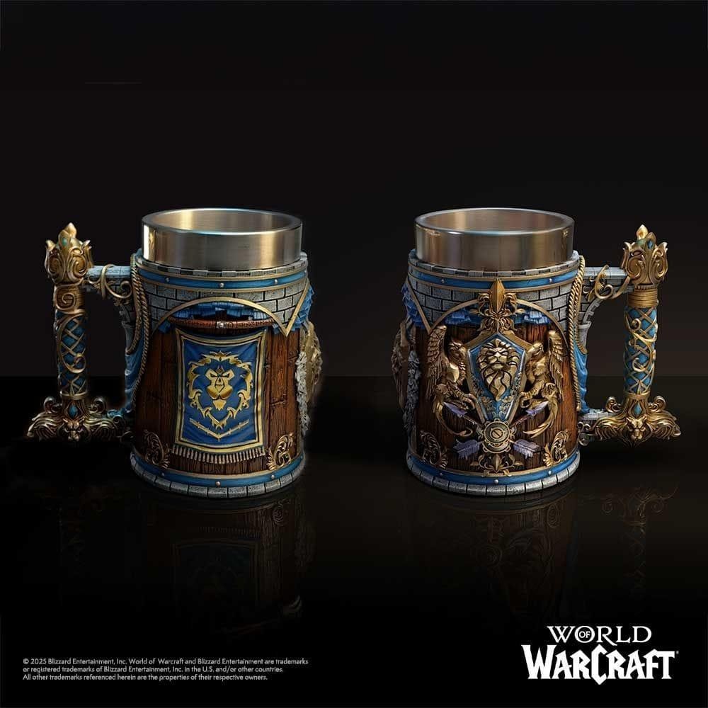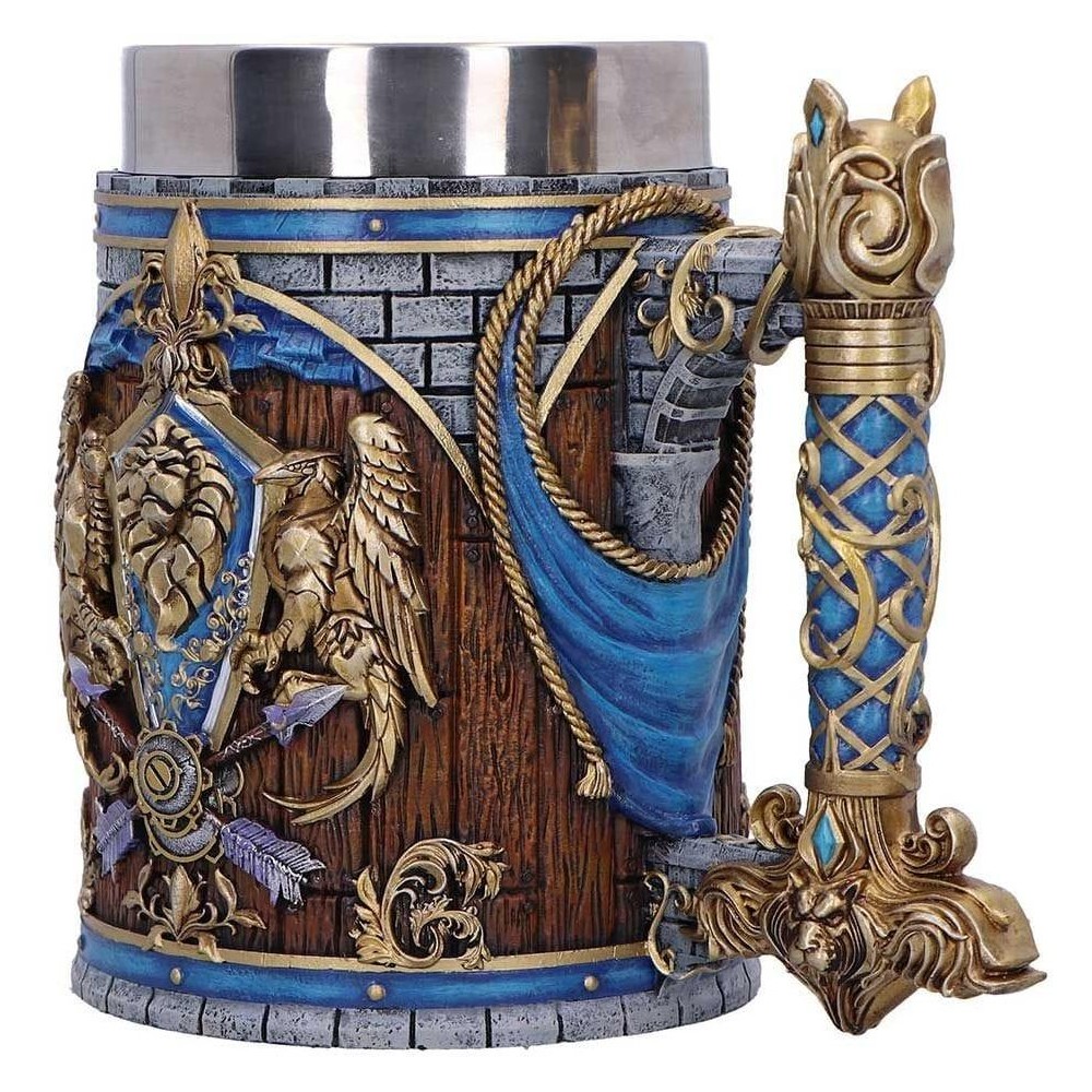 Korbel s vlajkou a znakem vznešené Aliance, frakce ze světa World of Warcraft, je ručně malovaný a propracovaný do toho nejmenšího detailu. Užij si každý doušek a nech se v duchu přenést do hodovních síní Azerothu! Korbel v modrých a zlatých barevných tónech má vyjímatelný nerezový vnitřek pro snadné mytí. Tento oficiálně licencovaný kousek udělá radost sběratelům a hráčům, ale hodí se i pro každodenní popíjení.