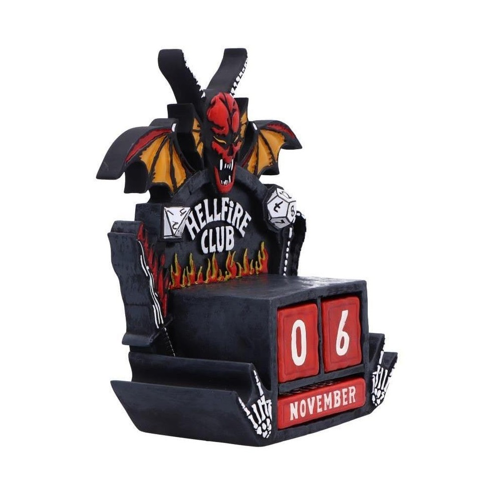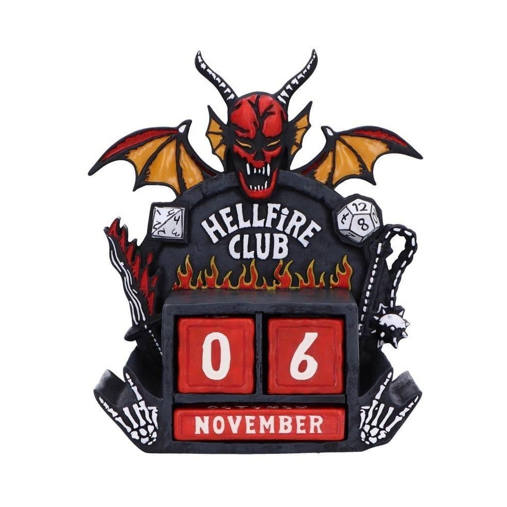 Nekonečný kalendář v podobě loga Hellfire Clubu propůjčí tvému domovu nebo pracovně tu správnou atmosféru ze seriálu Stranger Things. Kalendář obsahuje vyměnitelné červené dřevěné bloky pro dny a měsíce, které můžeš používat znovu a znovu každý rok. Detailní a ručně malovaný kousek pro sběratele i fanoušky oblíbené série a nechvalně známé D&D party z Hawkinsu.