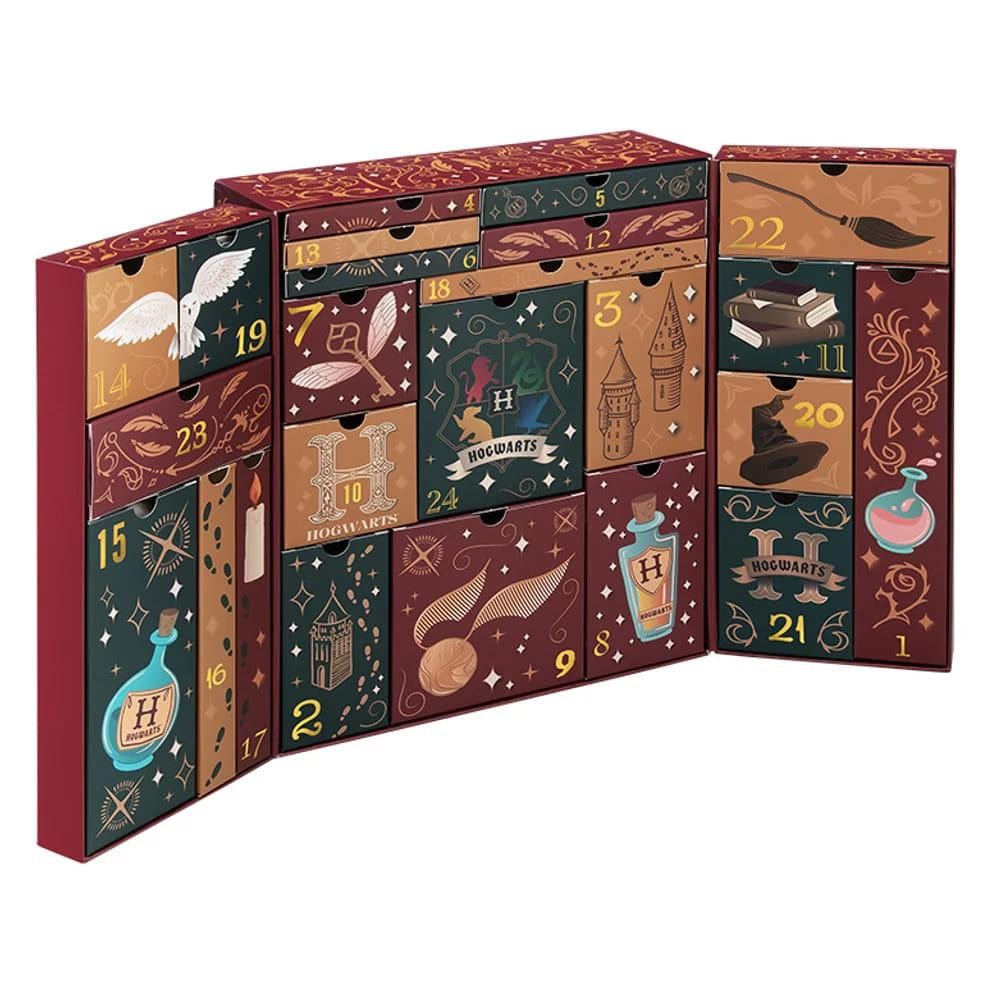 Prožij kouzelný předvánoční čas s tímto prémiovým adventním kalendářem z oficiální kolekce Harry Potter! Každý den tě čeká malé překvapení ze světa čar a kouzel – celkem 24 pečlivě vybraných dárků ukrytých v roztomilých zásuvkách, které rozzáří tvůj prosinec. Uvnitř najdeš krásné a praktické předměty s tématikou z Bradavic: lampičku Icon Light s Harrym Potterem, pera, magnety, nálepky, přívěsky, poznámkové bloky, záložky, kvízové kartičky, puzzle i dekorace, které si můžeš sám složit. Ať už jsi z koleje Nebelvír nebo Zmijozel, každý den tě čeká něco, co ti vykouzlí úsměv na tváři!