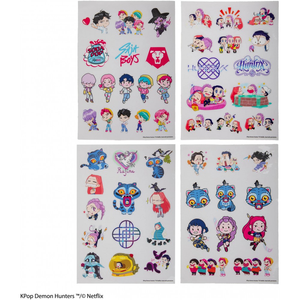 Přidej barvu a Kpop energii každodenním věcem s touto sadou 53 samolepek KPop Demon Hunters! Sada obsahuje 4 archy vysoce kvalitních vinylových samolepek plných výrazných barev a poutavého designu, které zachycují tvé oblíbené postavy a ikonické motivy. V balení najdeš fanoušky oblíbené členy HUNTR/X – Rumi, Zoey a Mira, Saja Boys – Jinu, Abby, Mystery, Romance a Baby, dále Derpy a spoustu dalších hravých ilustrací. Samolepky jsou ideální pro zdobení notebooků, telefonů, diářů, herních doplňků nebo kdekoliv, kde chceš přidat K-pop styl a fanouškovský šmrnc!