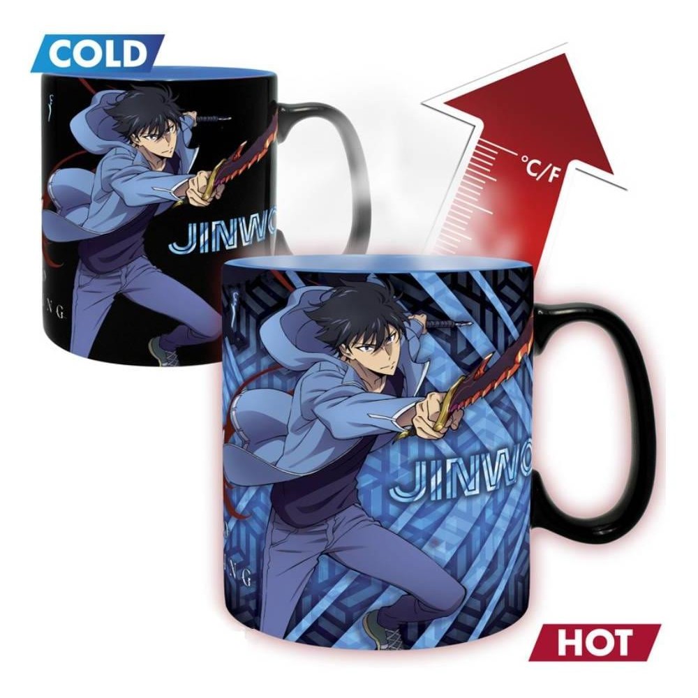 Přidej se k armádě stínů s hrnkem **Solo Leveling – Jinwoo & Igris**! Motiv ze světa **Solo Leveling** zachycuje **Jinwooa** a jeho věrného velitele **Igrise**, kteří stojí bok po boku jako symbol neuvěřitelné síly a loajality. Po nalití horkého nápoje se navíc design magicky promění a odhalí ještě působivější scénu, která ti zpříjemní každou pauzu. Hrnek má objem **460 ml**, takže si svůj oblíbený nápoj vychutnáš naplno, a je vyroben z kvalitní keramiky pro každodenní použití. Perfektní kousek pro každého fanouška, který chce mít kousek světa Solo Leveling vždy u sebe! Hrnek není vhodný do mikrovlnky a myčky nádobí.
