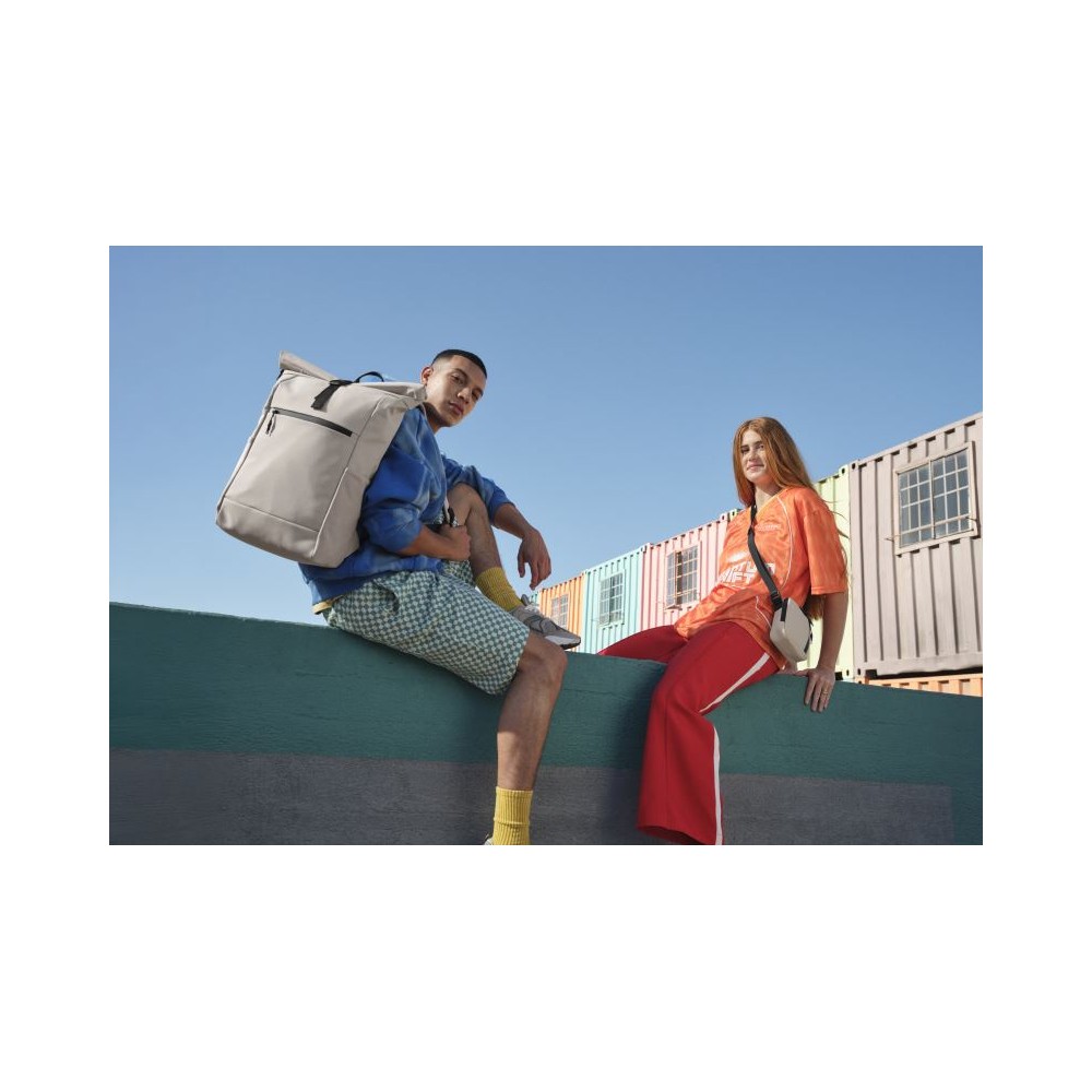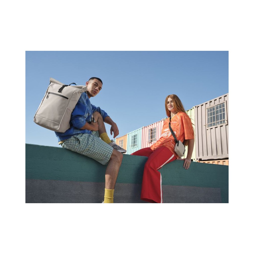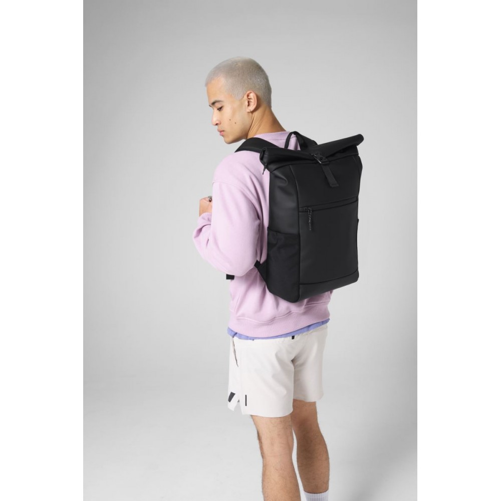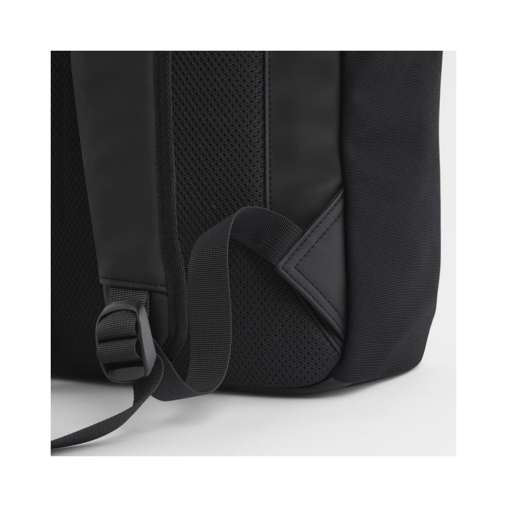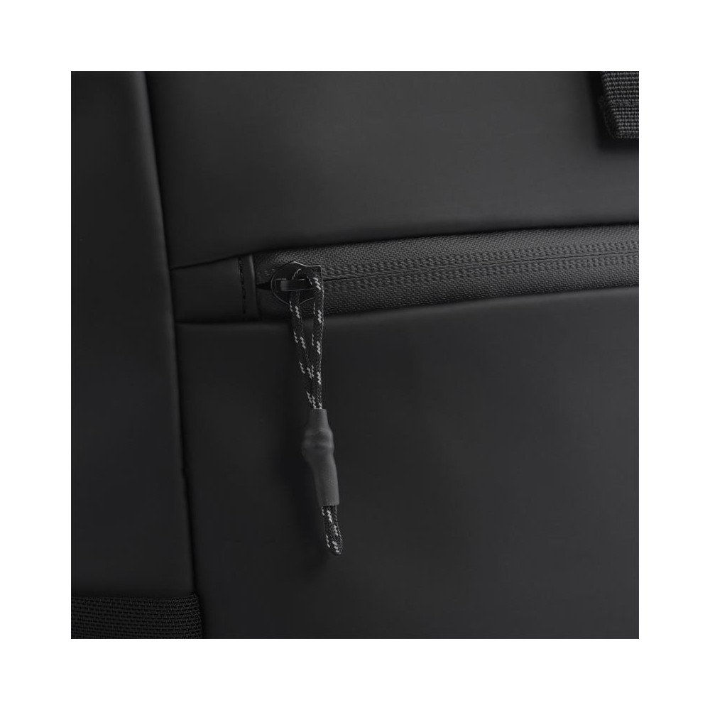 Voděodpudivý materiál, rukojeť, nastavitelné a polstrované ramenní popruhy, elastické boční kapsy ze síťoviny, přední kapsa na zip, polstrovaná přihrádka na notebook vhodná pro notebooky do max. 16", polstrovaná záda, nastavitelné zapínání na sponu, táhla zipu s reflexními prvky, štítek Tear Away, objem 20l, rozměry: 30x45x19cm, pouze čistit houbičkou, nesmí se prát