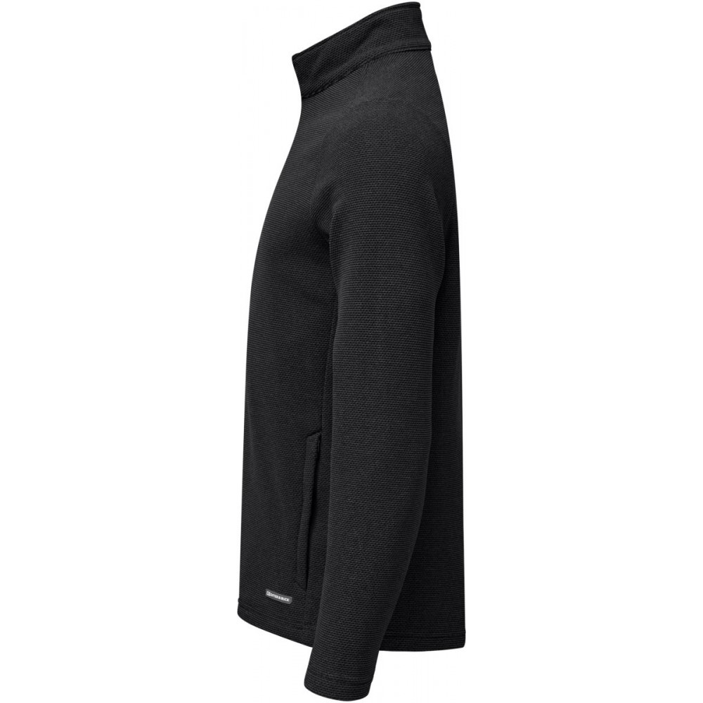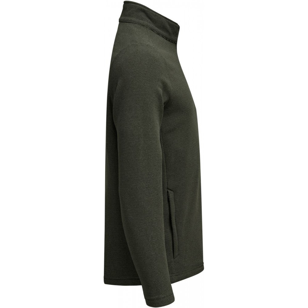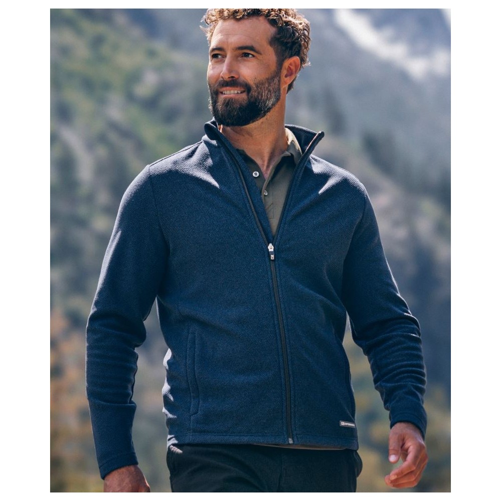 Fleece s žakárovou strukturou, prodyšný materiál regulujicí vlhkost, YKK zip, 2 boční kapsy se zipem, velmi měkký materiál, rychleschnoucí a regulující teplo, pratelné na 40°, nelze žehlit, nelze sušit v sušičce, nelze chemicky čistit