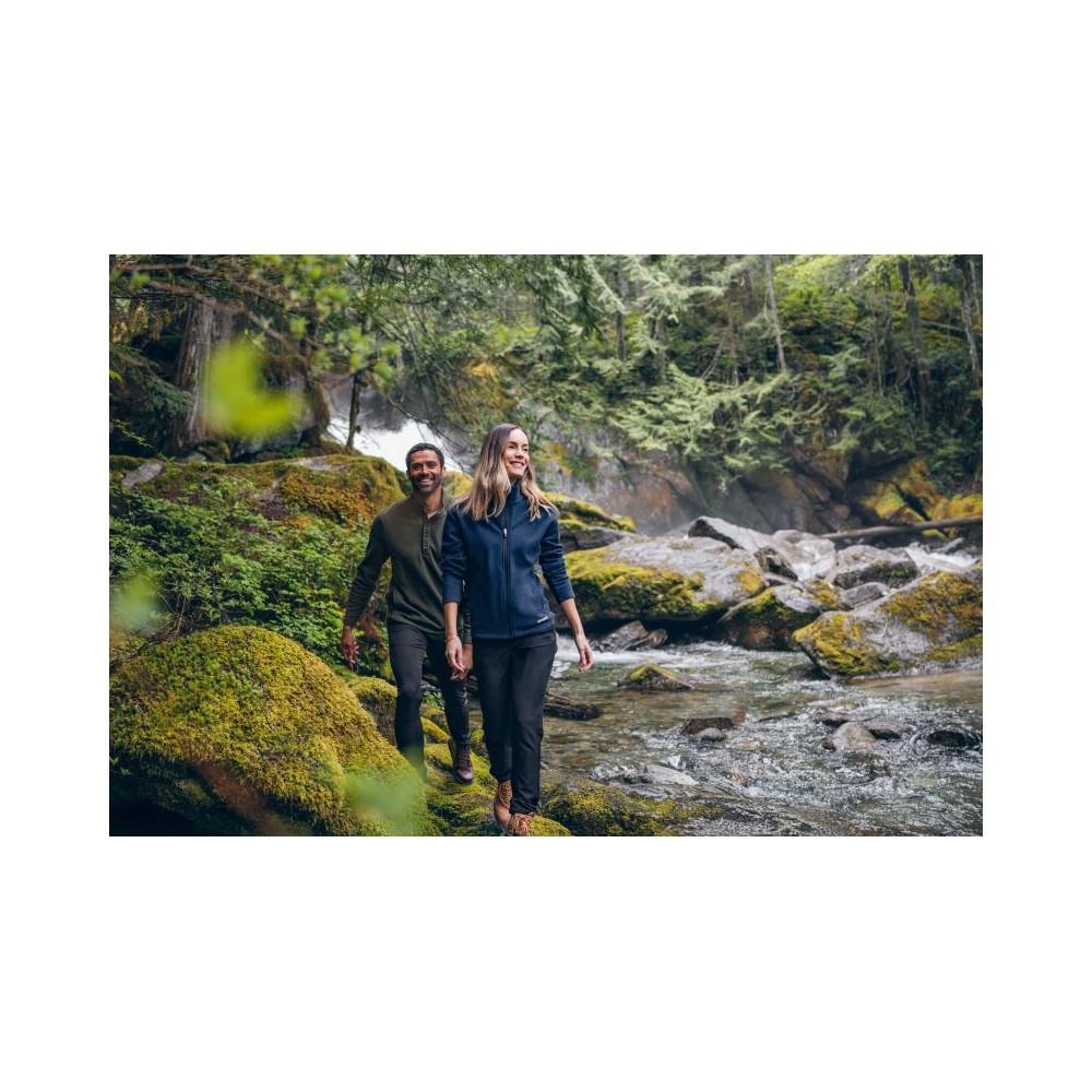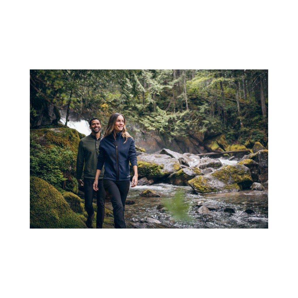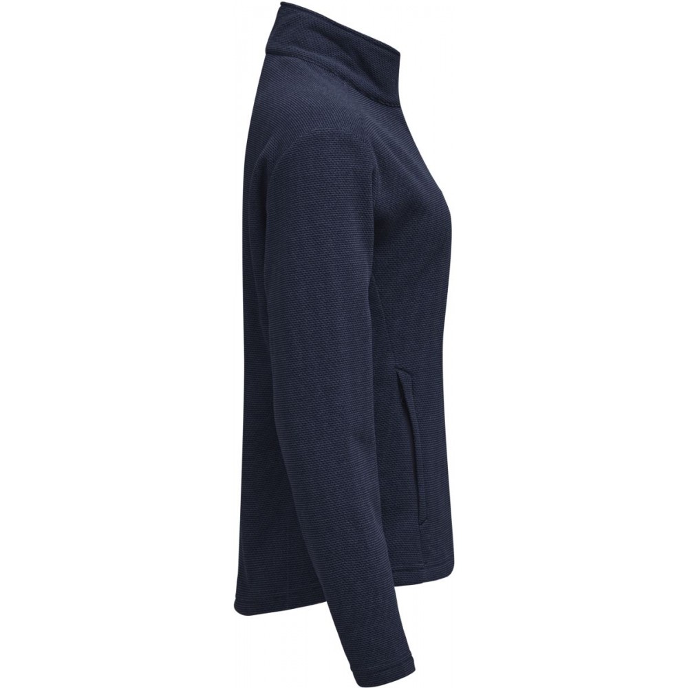 Fleece s žakárovou strukturou, prodyšný materiál regulujicí vlhkost, YKK zip, 2 boční kapsy se zipem, velmi měkký materiál, rychleschnoucí a regulující teplo, pratelné na 40°, nelze žehlit, nelze sušit v sušičce, nelze chemicky čistit
