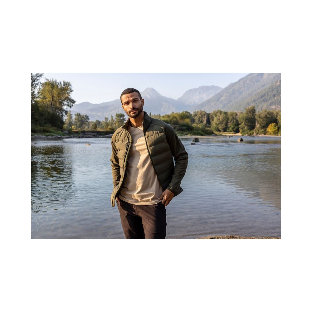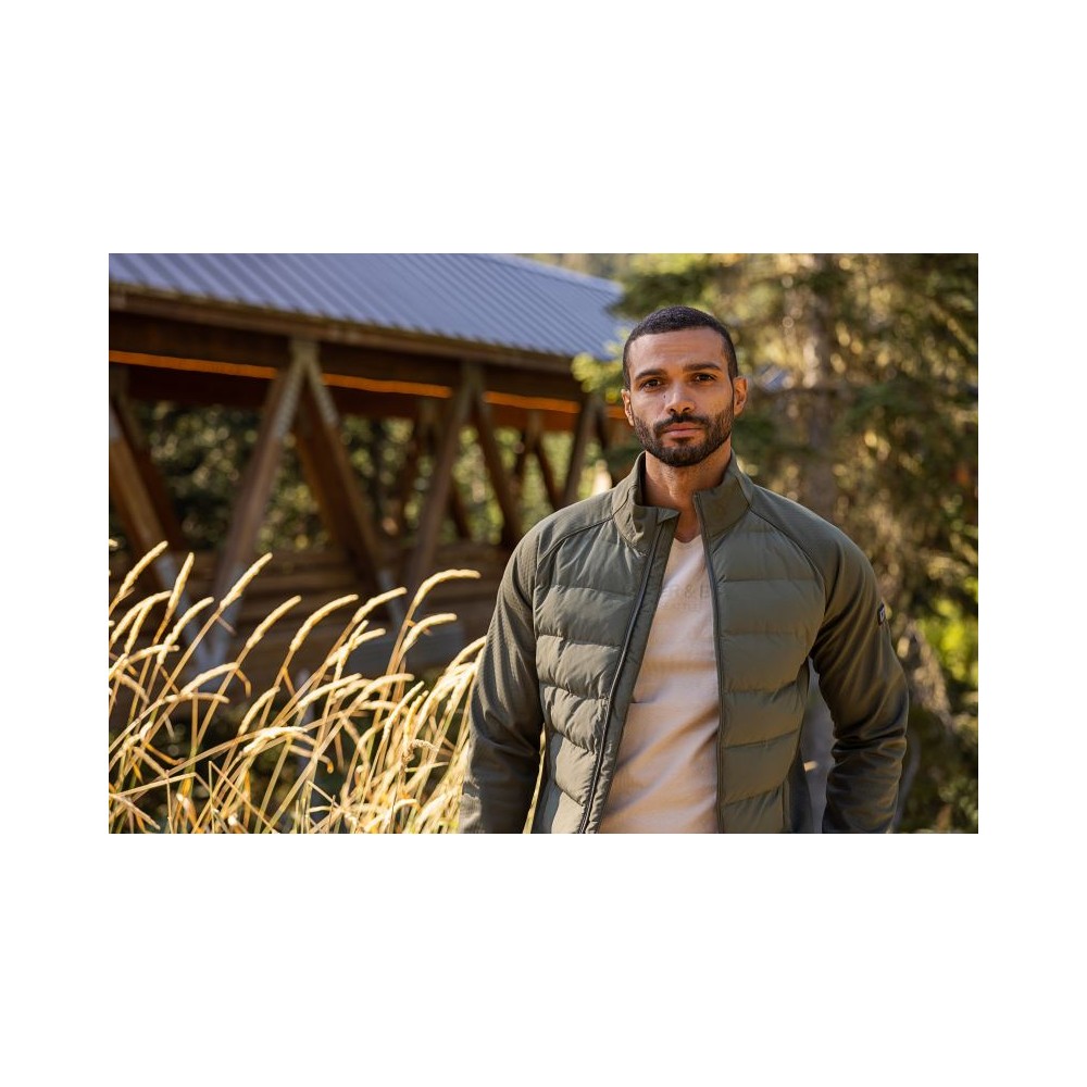 Výplň Sustans® z obnovitelných vláken DuPont™ Sorona®, stojáček, YKK zipy, 2 boční kapsy se zipem, polstrovaná a prošívaná přední a zadní strana, větší volnost pohybu díky strečovým vsadkám po stranách, pratelné na 30°, nelze žehlit, nelze sušit v sušičce, nelze chemicky čistit