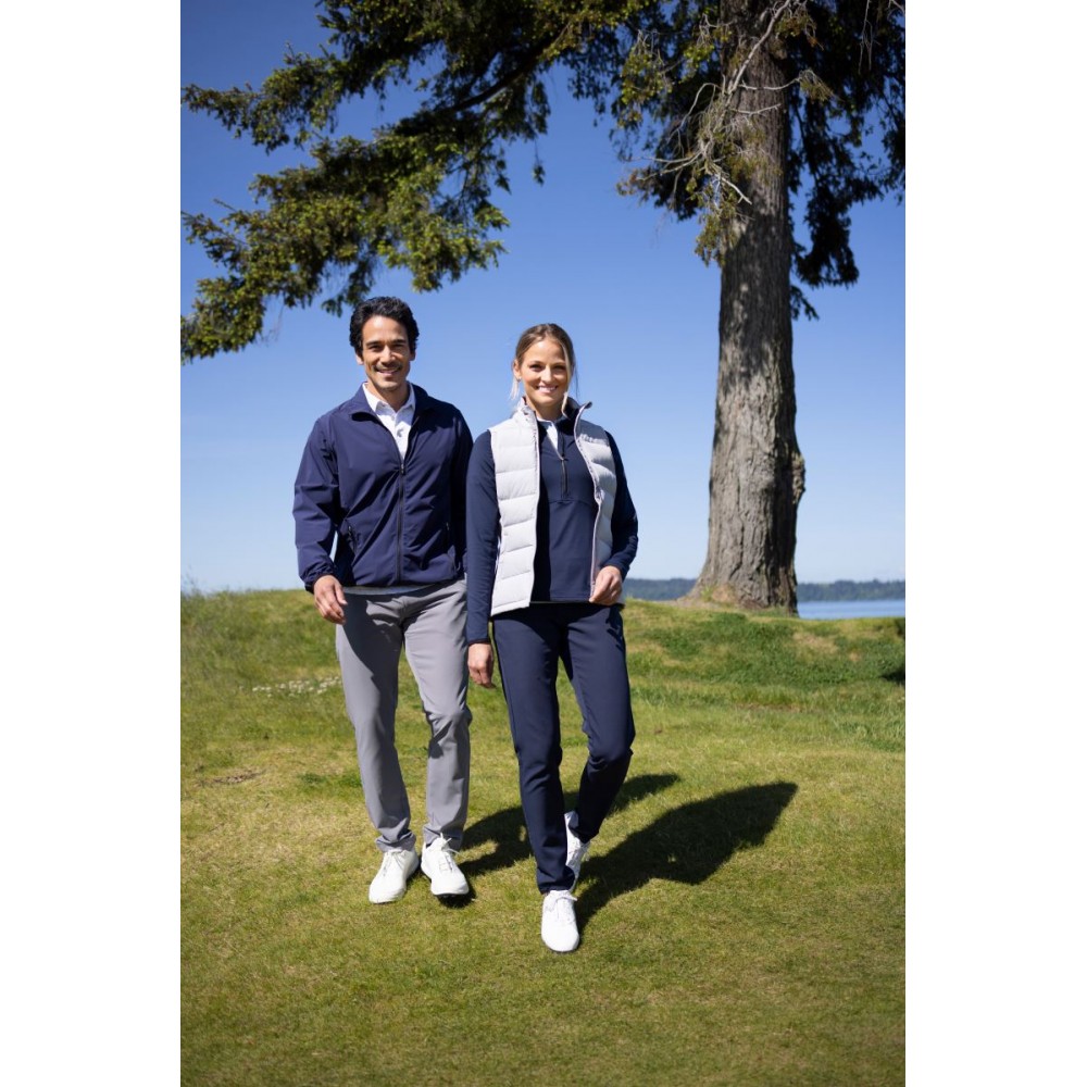 Výplň Sustans® z obnovitelných vláken DuPont™ Sorona®, stojáček, YKK zipy, 2 boční kapsy se zipem, polstrovaná a prošívaná přední a zadní strana, větší volnost pohybu díky strečovým vsadkám po stranách, pratelné na 30°, nelze žehlit, nelze sušit v sušičce, nelze chemicky čistit