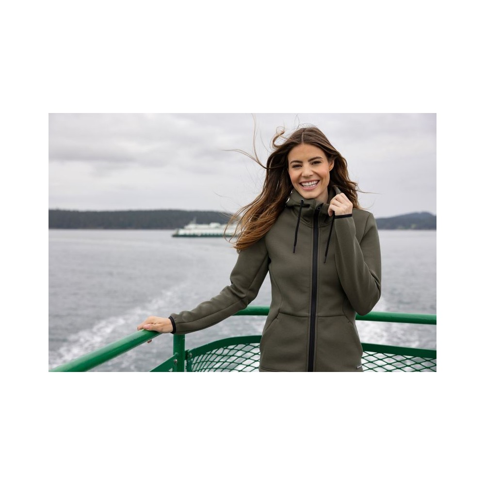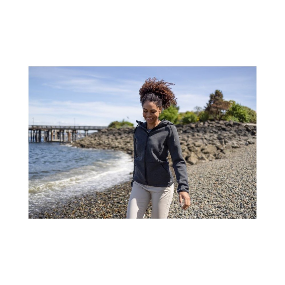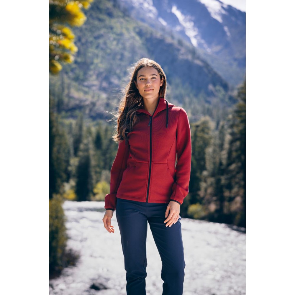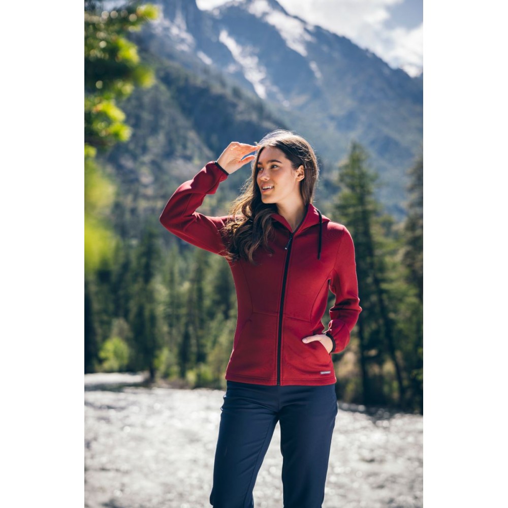 Podšitá kapuce se šňůrkou, elastické manžety na rukávech, 2 boční kapsy se zipem, dvojitě pletená, měkký pružný materiál, výšivka loga na okraji kapuce, UV ochrana 50+, pratelné na 40°, nelze sušit v sušičce, nelze chemicky čistit