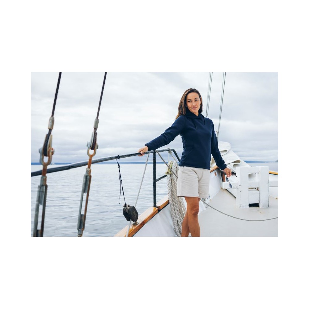 Podšitá kapuce se šňůrkou, elastické manžety na rukávech, 2 boční kapsy se zipem, dvojitě pletená, měkký pružný materiál, výšivka loga na okraji kapuce, UV ochrana 50+, pratelné na 40°, nelze sušit v sušičce, nelze chemicky čistit