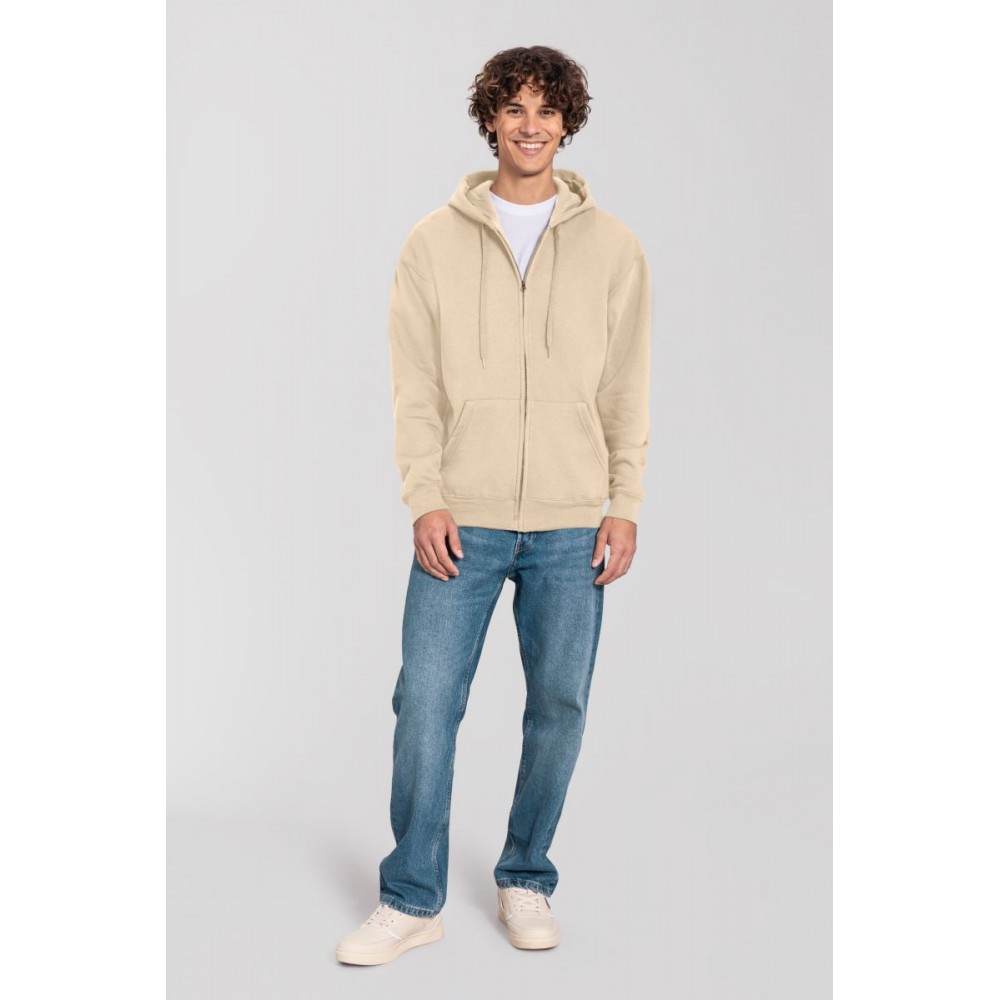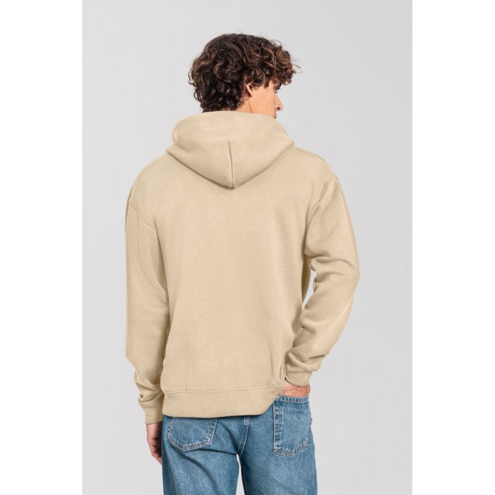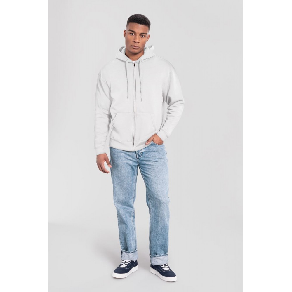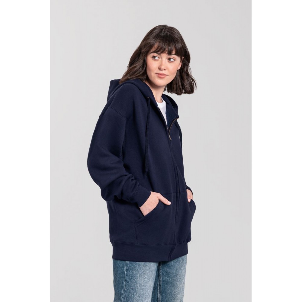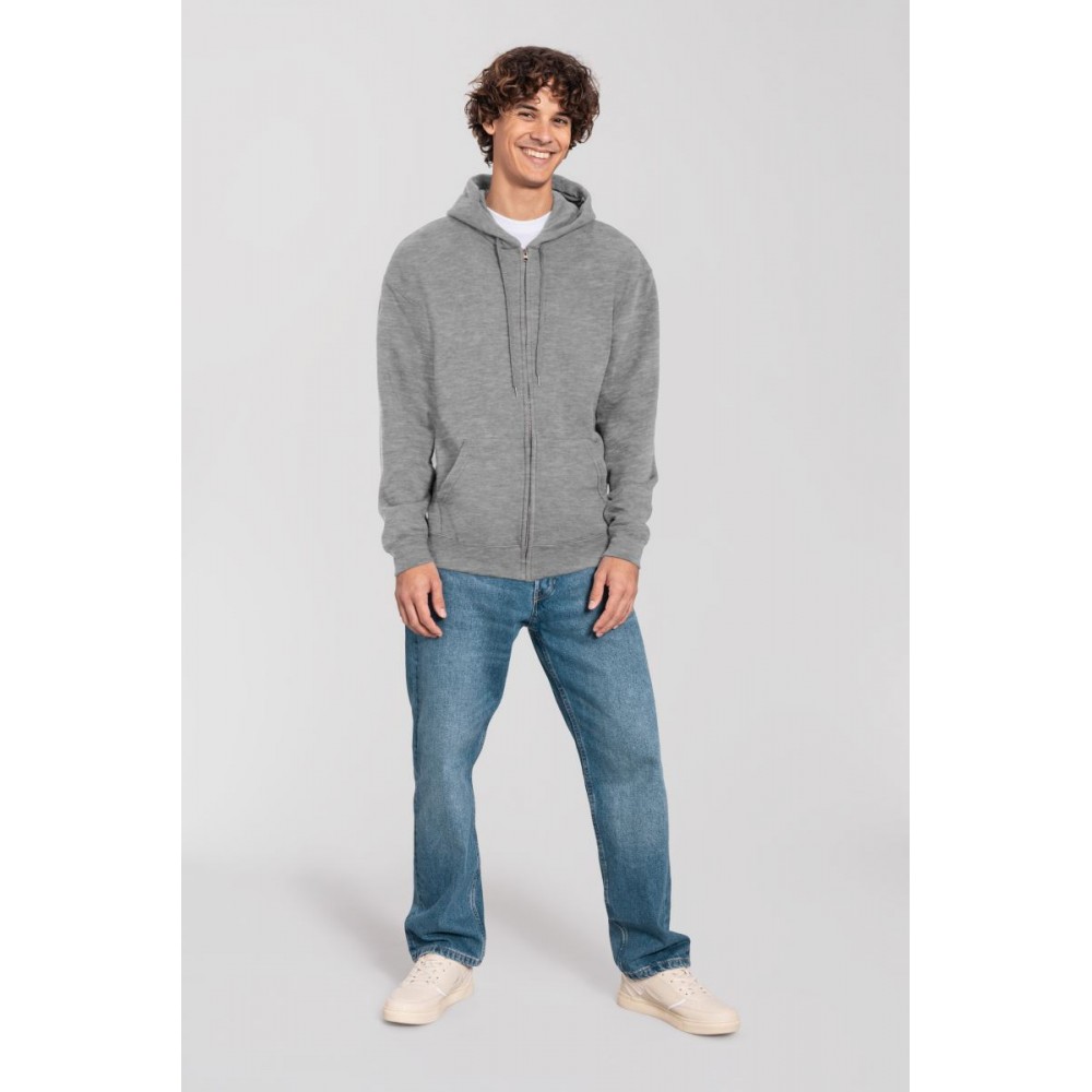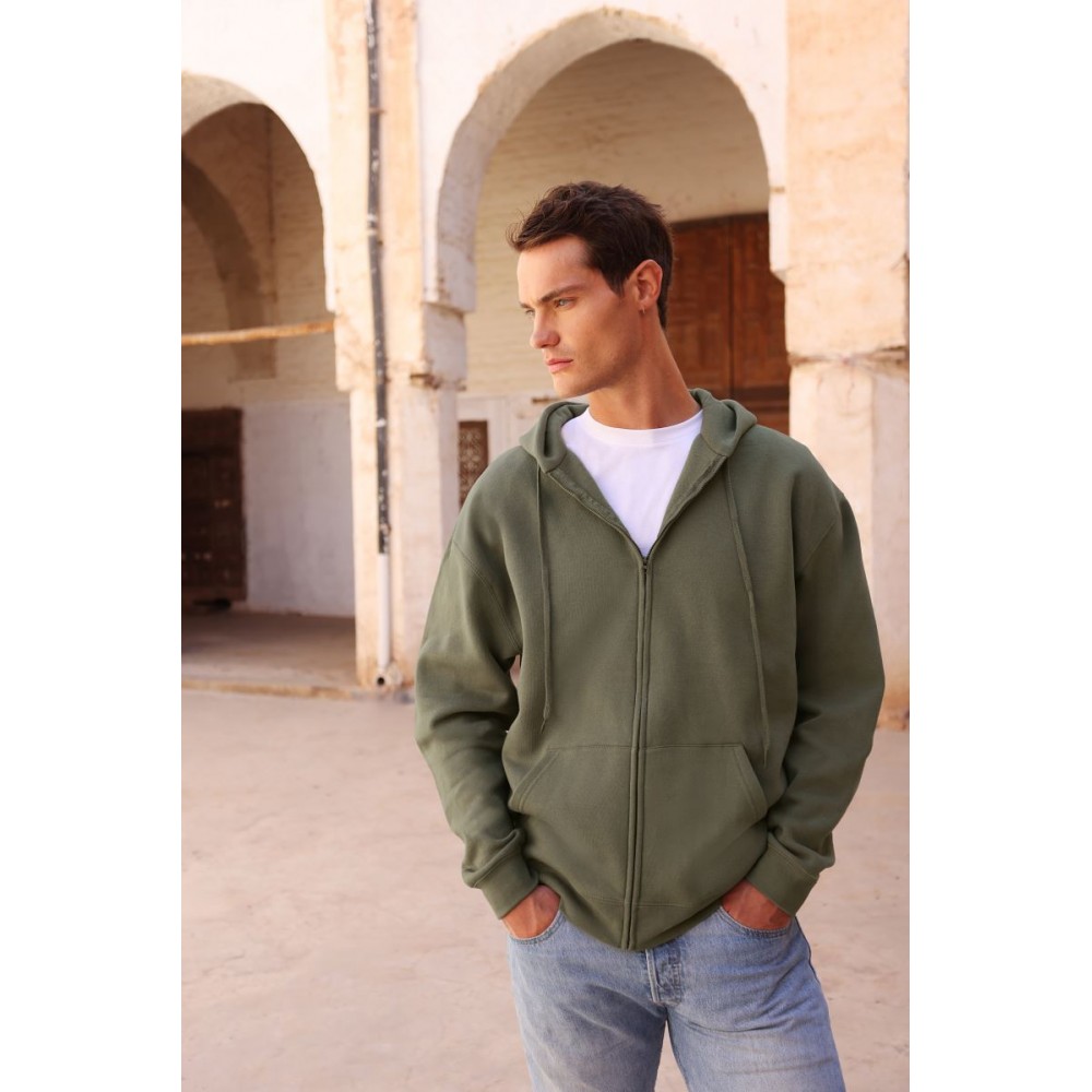 Klasický střih, podšitá kapuce s plochou šňůrkou tón v tónu, žebrované manžety na rukávech a lemu s Lycrou®, skrytý kovový zip, klokaní kapsa, povrch ze 100% bavlny, uvnitř počesaná, Použití udržitelných vláken CiCLO®, štítek Tear Away, pratelné na 40°, lze sušit v sušičce při nízké teplotěg