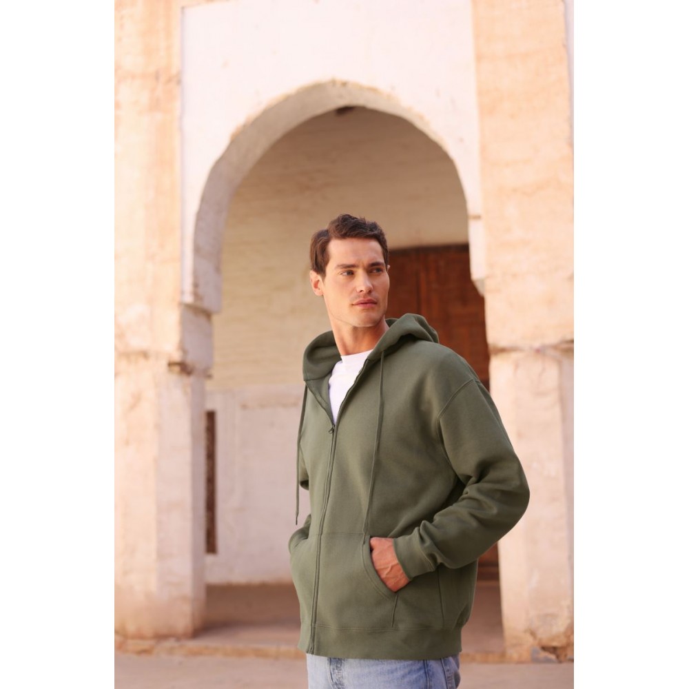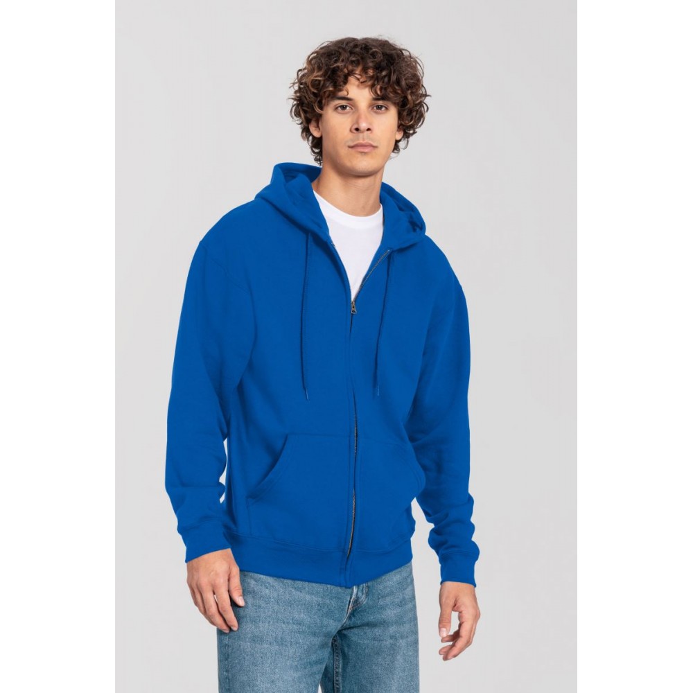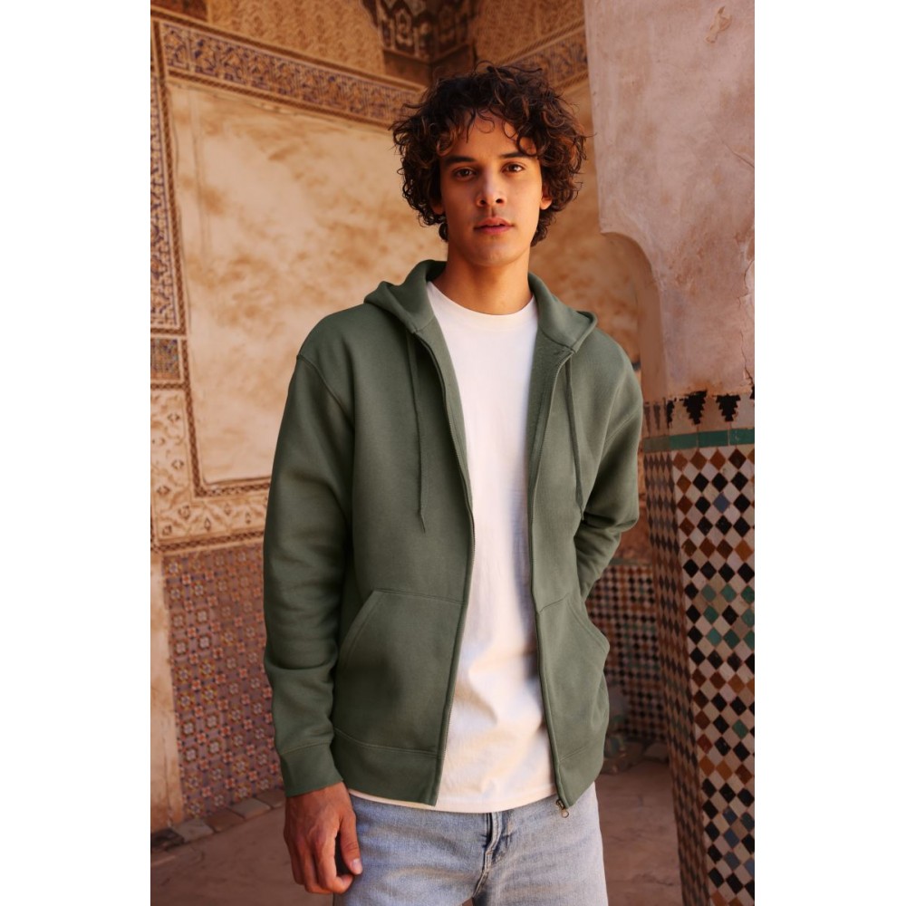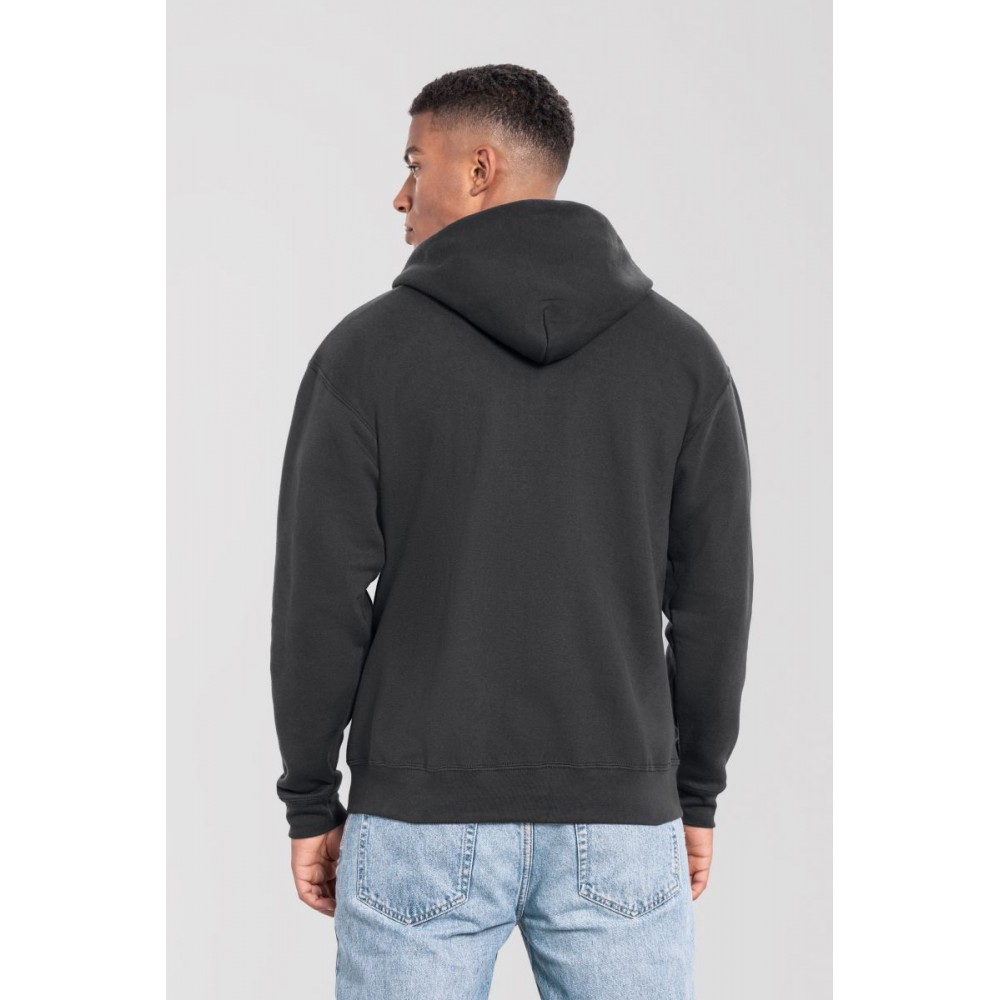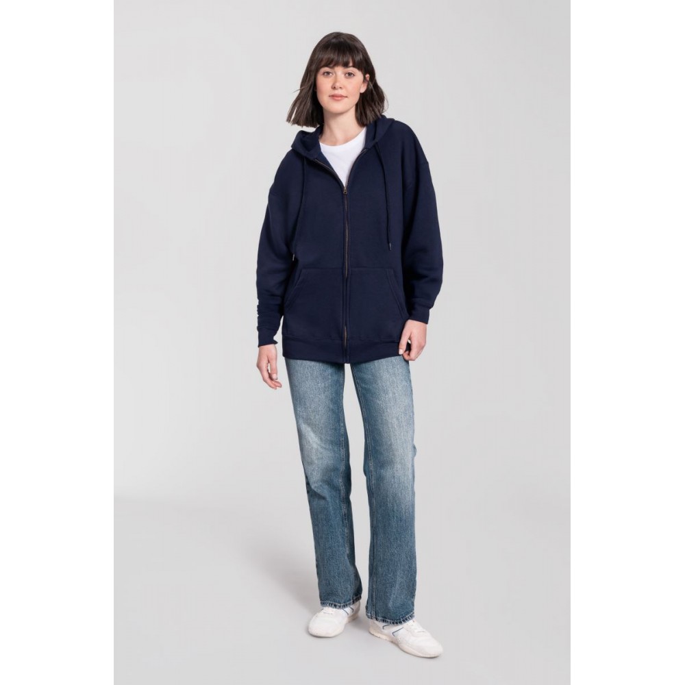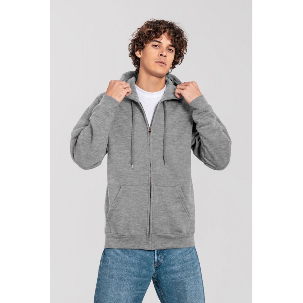 Klasický střih, podšitá kapuce s plochou šňůrkou tón v tónu, žebrované manžety na rukávech a lemu s Lycrou®, skrytý kovový zip, klokaní kapsa, povrch ze 100% bavlny, uvnitř počesaná, Použití udržitelných vláken CiCLO®, štítek Tear Away, pratelné na 40°, lze sušit v sušičce při nízké teplotěg