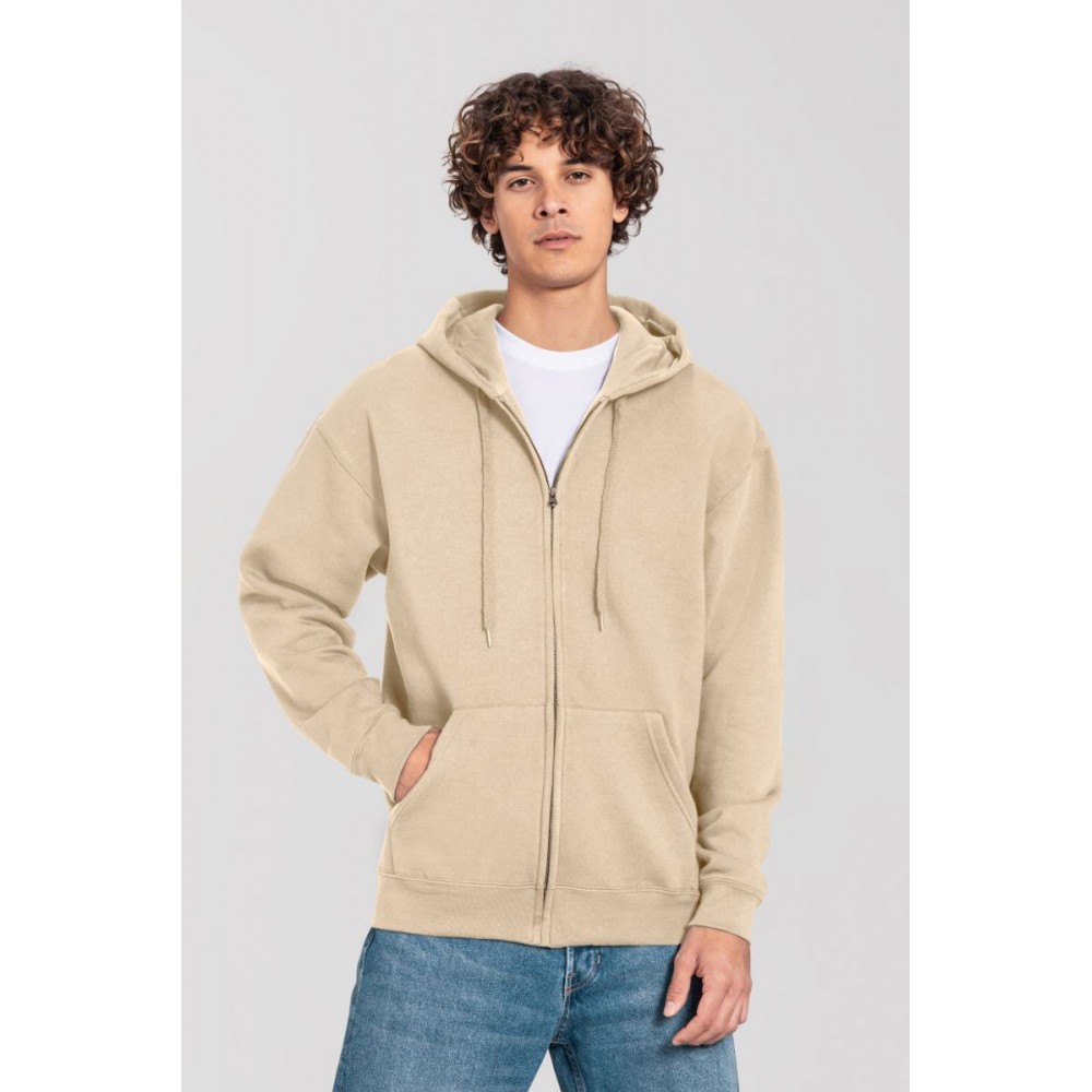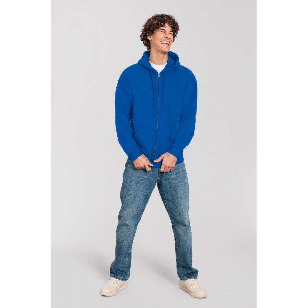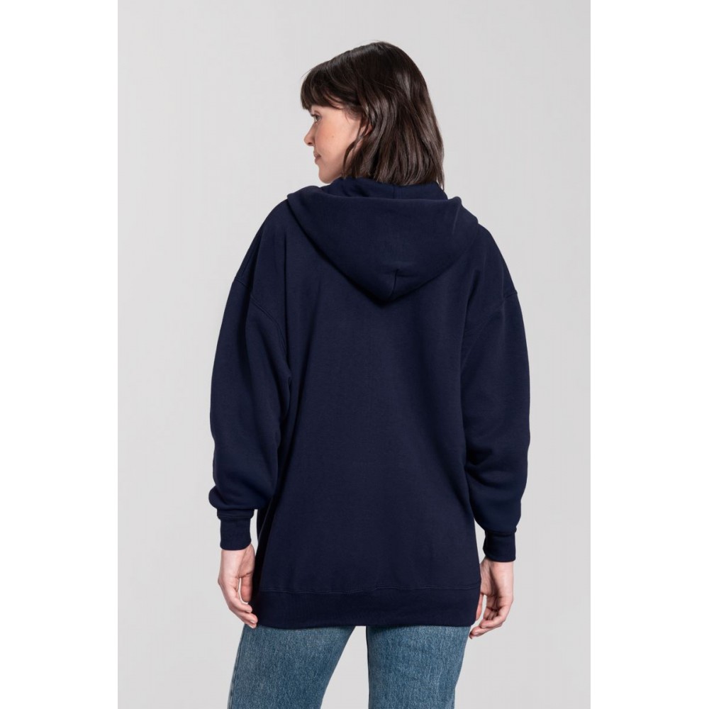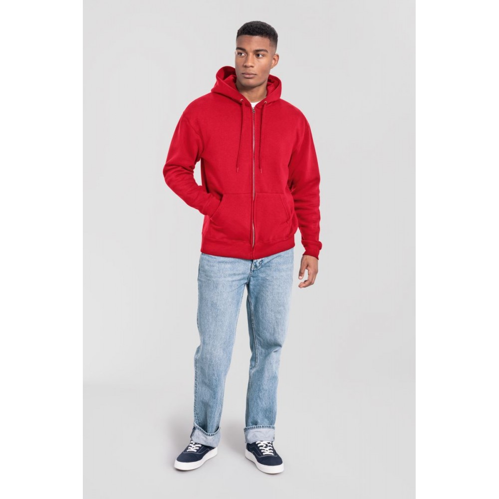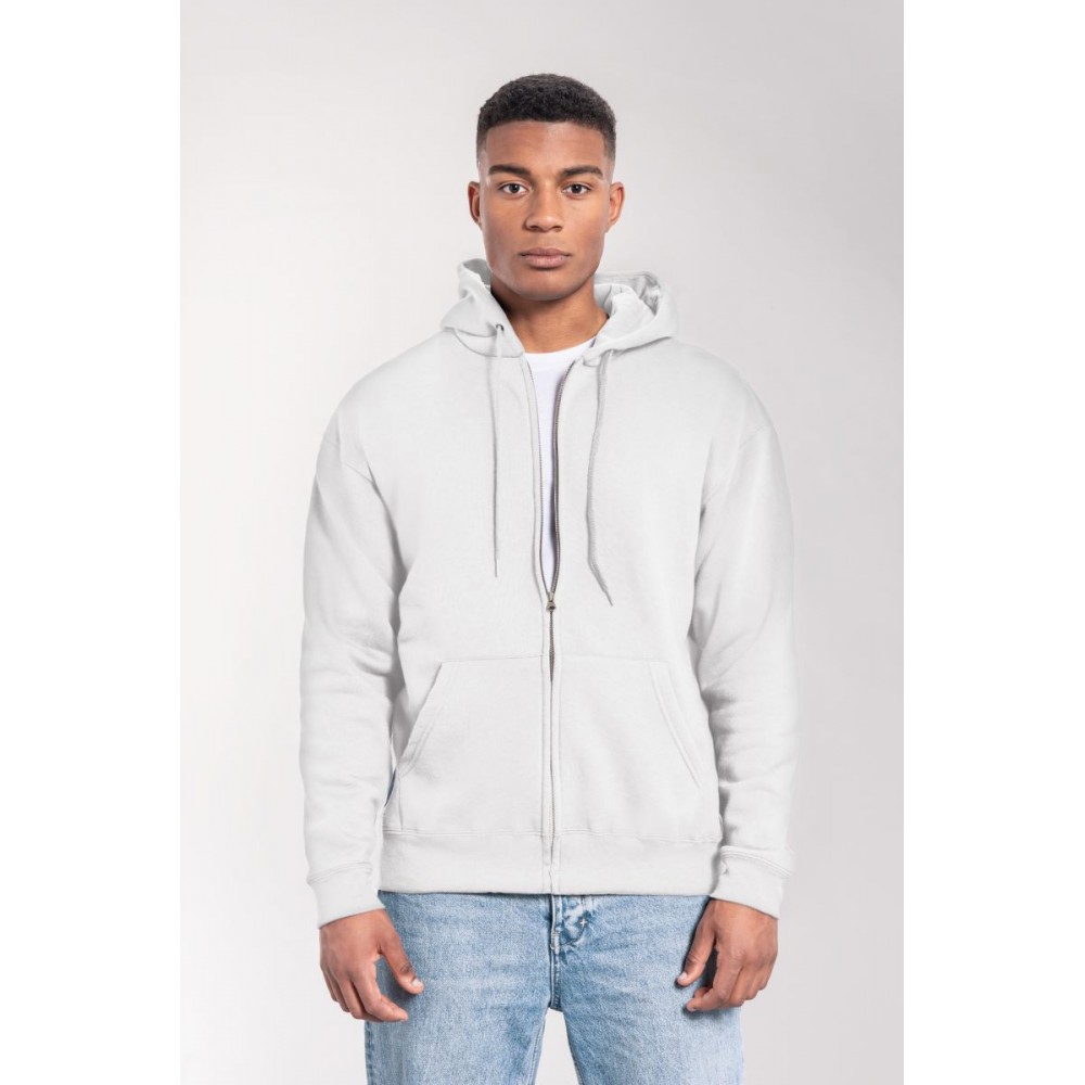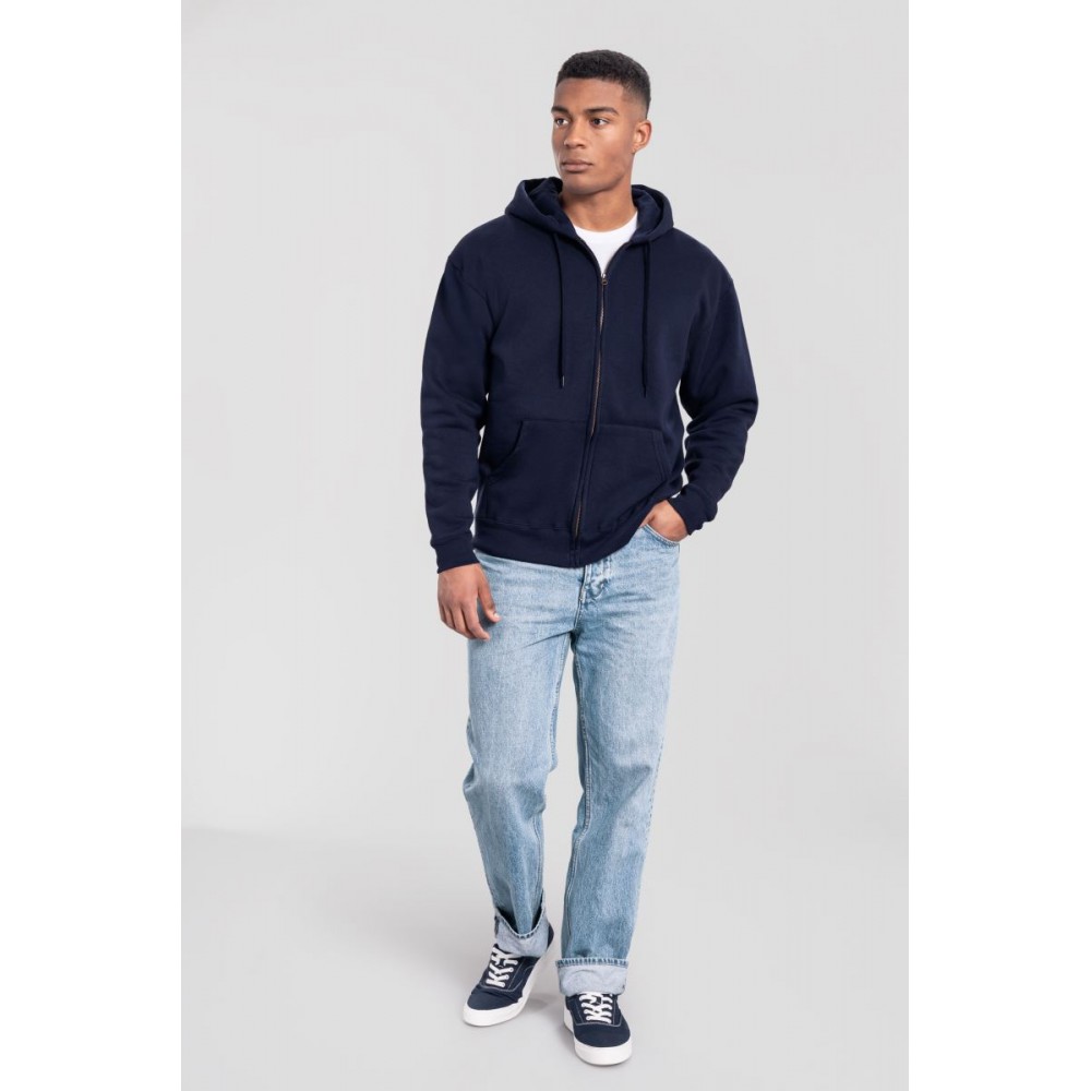 Klasický střih, podšitá kapuce s plochou šňůrkou tón v tónu, žebrované manžety na rukávech a lemu s Lycrou®, skrytý kovový zip, klokaní kapsa, povrch ze 100% bavlny, uvnitř počesaná, Použití udržitelných vláken CiCLO®, štítek Tear Away, pratelné na 40°, lze sušit v sušičce při nízké teplotěg