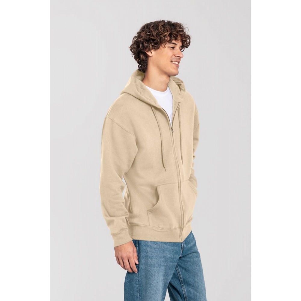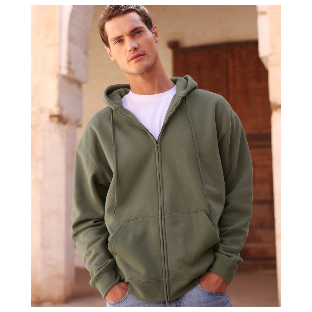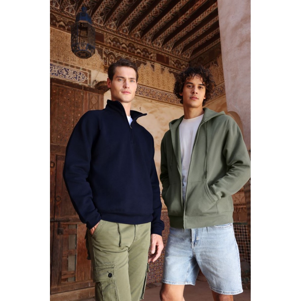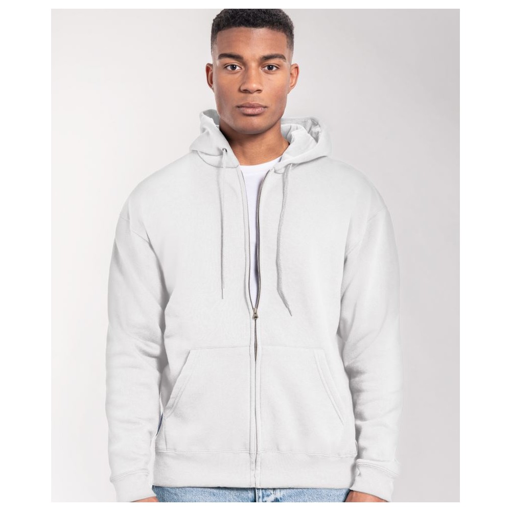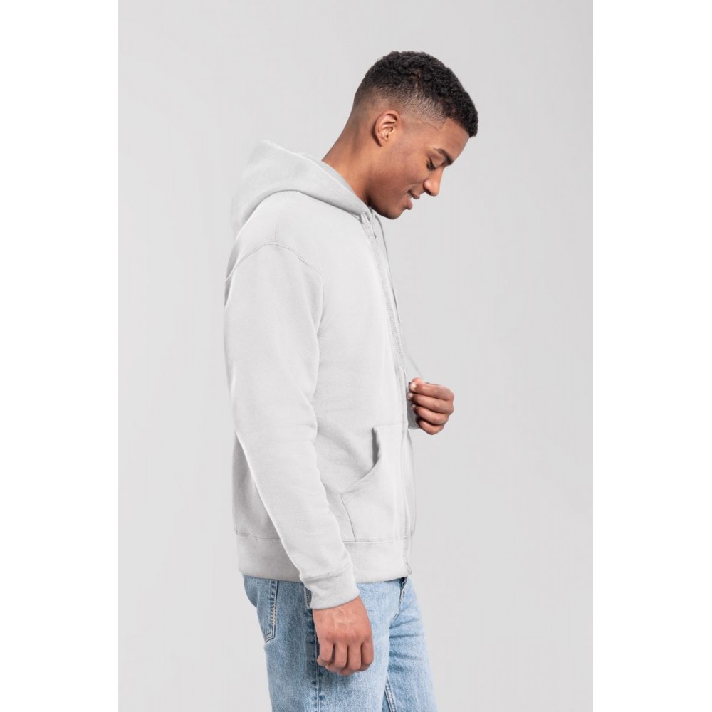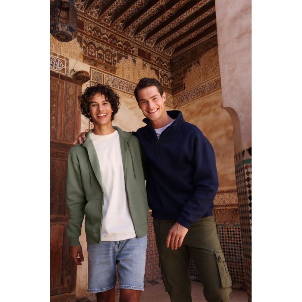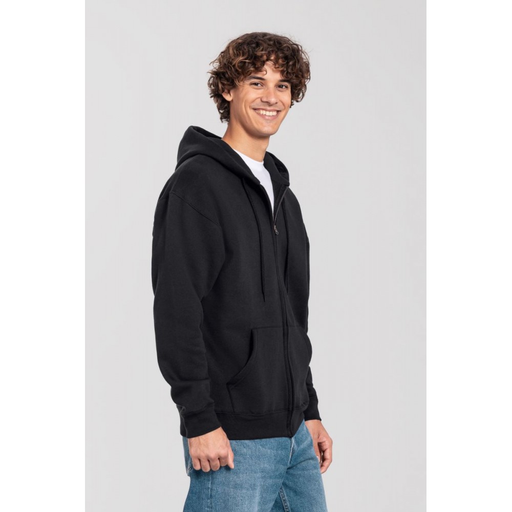 Klasický střih, podšitá kapuce s plochou šňůrkou tón v tónu, žebrované manžety na rukávech a lemu s Lycrou®, skrytý kovový zip, klokaní kapsa, povrch ze 100% bavlny, uvnitř počesaná, Použití udržitelných vláken CiCLO®, štítek Tear Away, pratelné na 40°, lze sušit v sušičce při nízké teplotěg