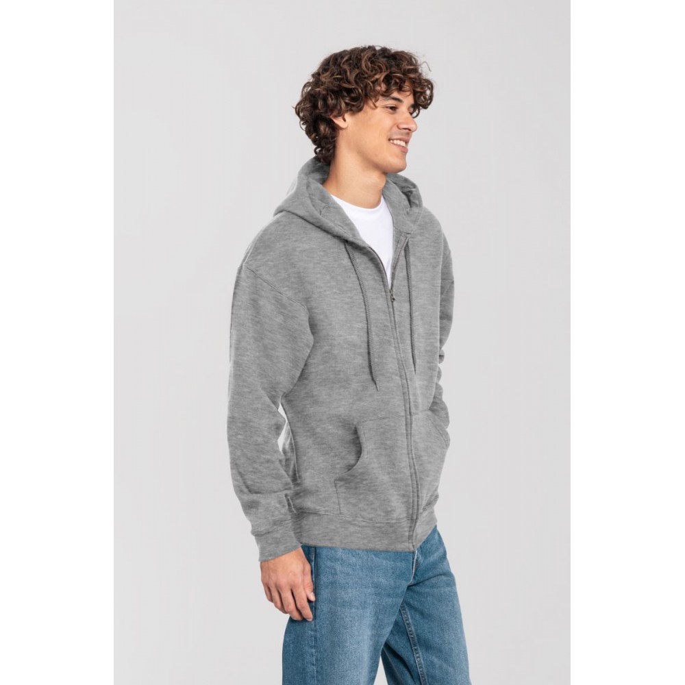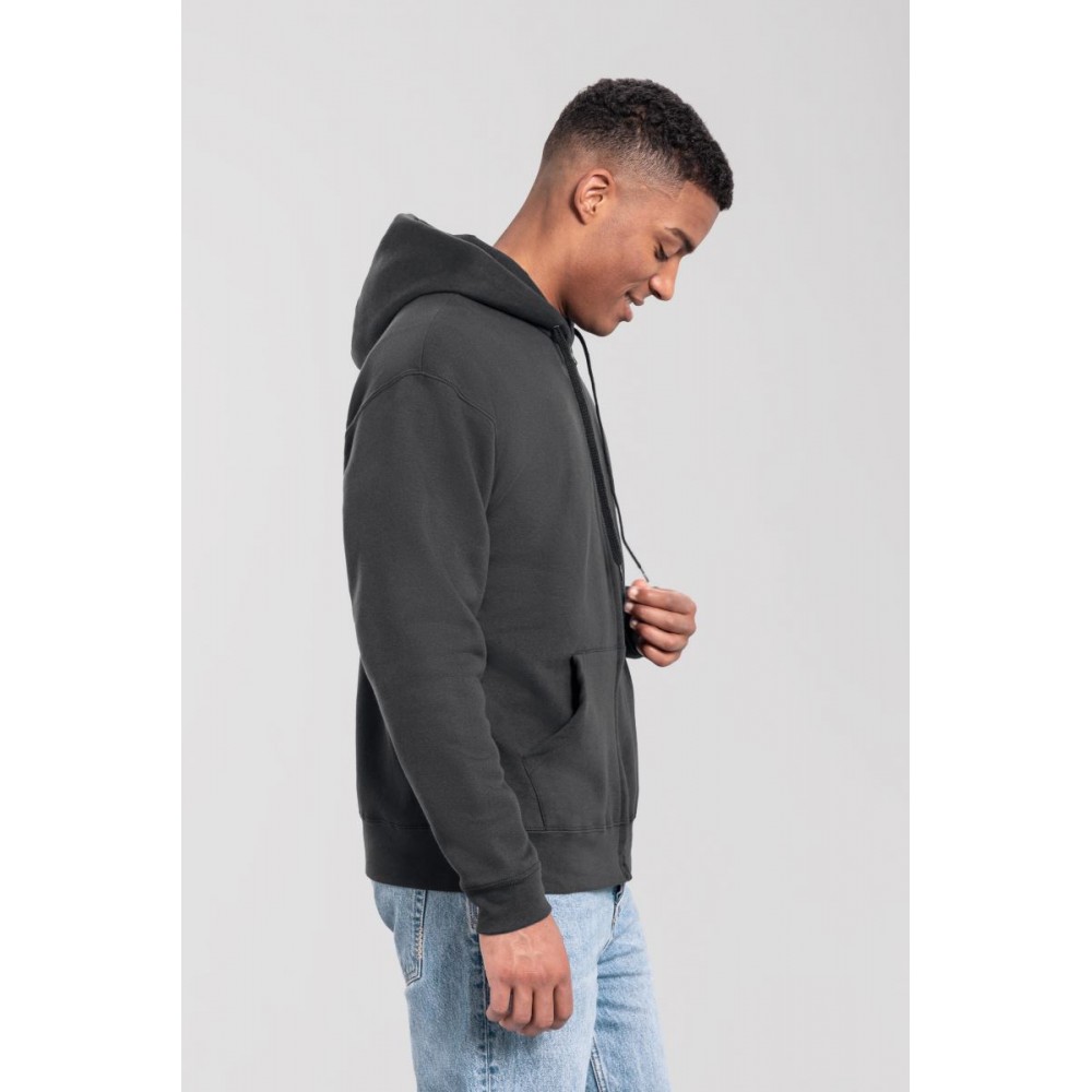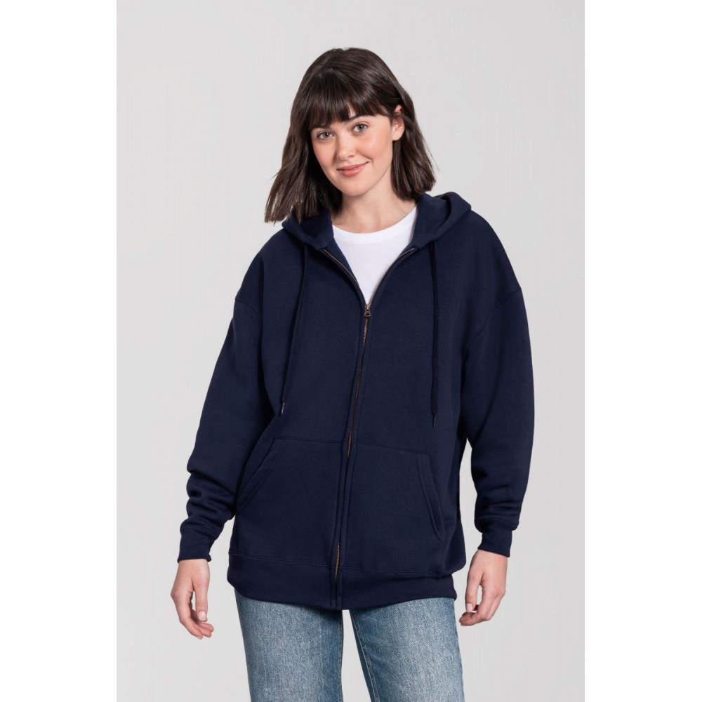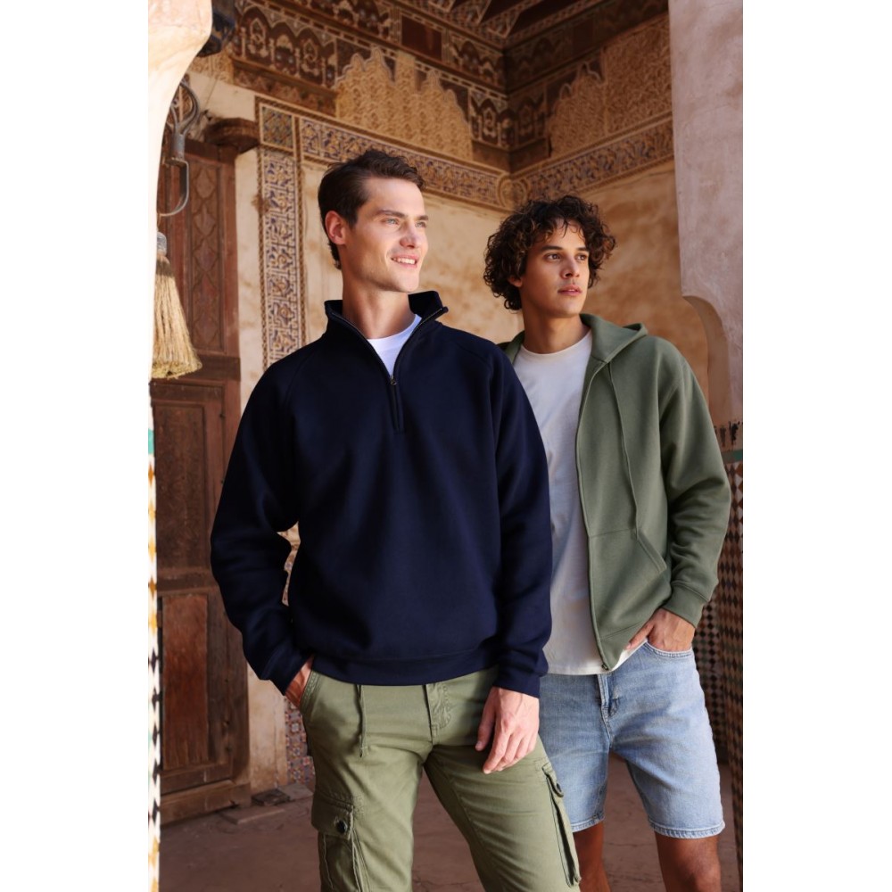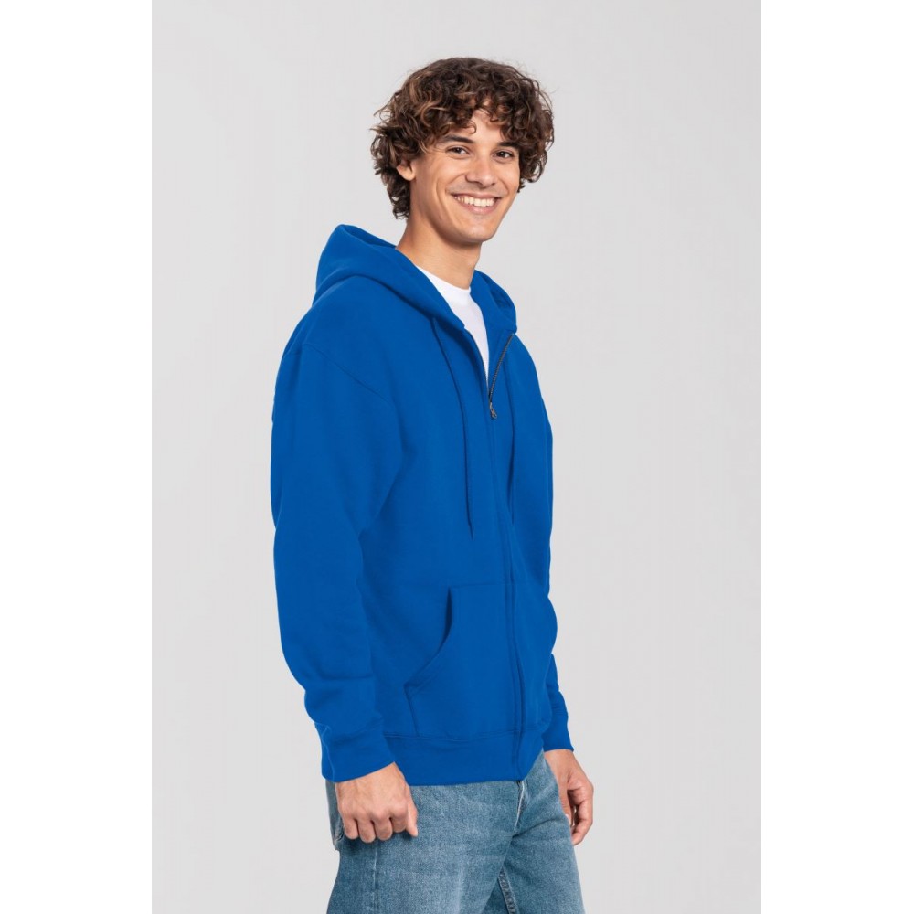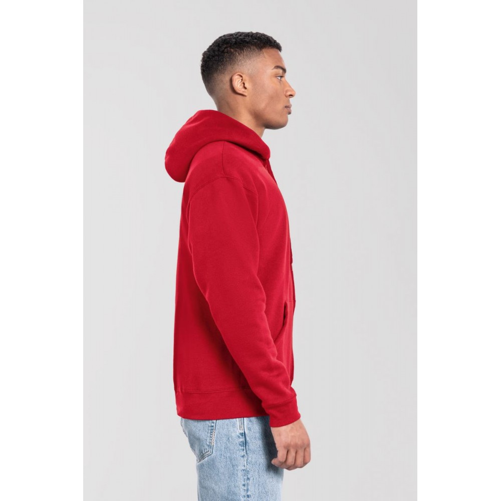 Klasický střih, podšitá kapuce s plochou šňůrkou tón v tónu, žebrované manžety na rukávech a lemu s Lycrou®, skrytý kovový zip, klokaní kapsa, povrch ze 100% bavlny, uvnitř počesaná, Použití udržitelných vláken CiCLO®, štítek Tear Away, pratelné na 40°, lze sušit v sušičce při nízké teplotěg